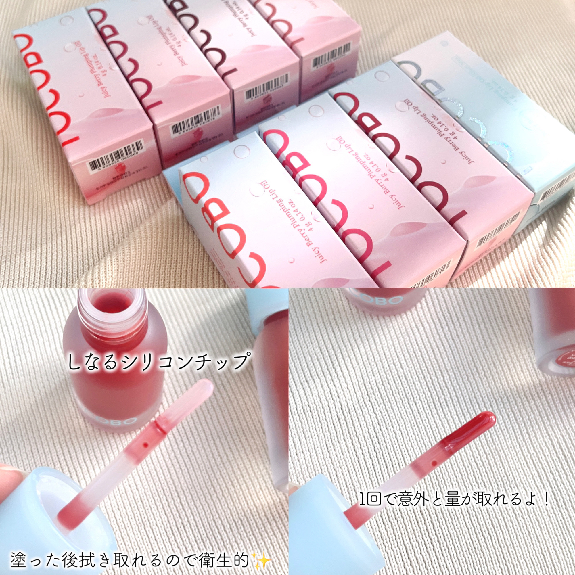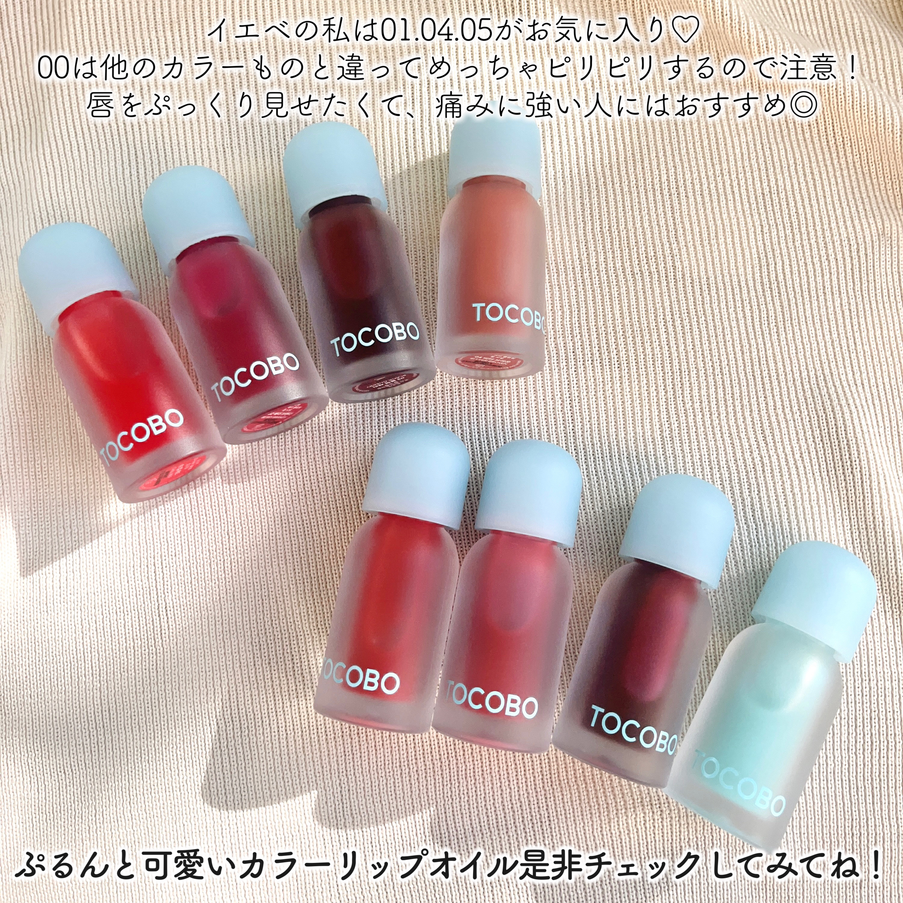 TOCOBO のジューシーベリープランピングリップオイル💄 このリップ、プランピング効果もあるのでつやんつやんぷるんぷるんなタンフルリップになれる!🍭 ・11 ハニーレモン (コレはプランピング効果が2倍なのでかなりピリピリ⚡️😳ぷっくりになった!) ・14 ピーチネクター(日本限定色🇯🇵)・16 アップルマンゴー(日本限定色🇯🇵)