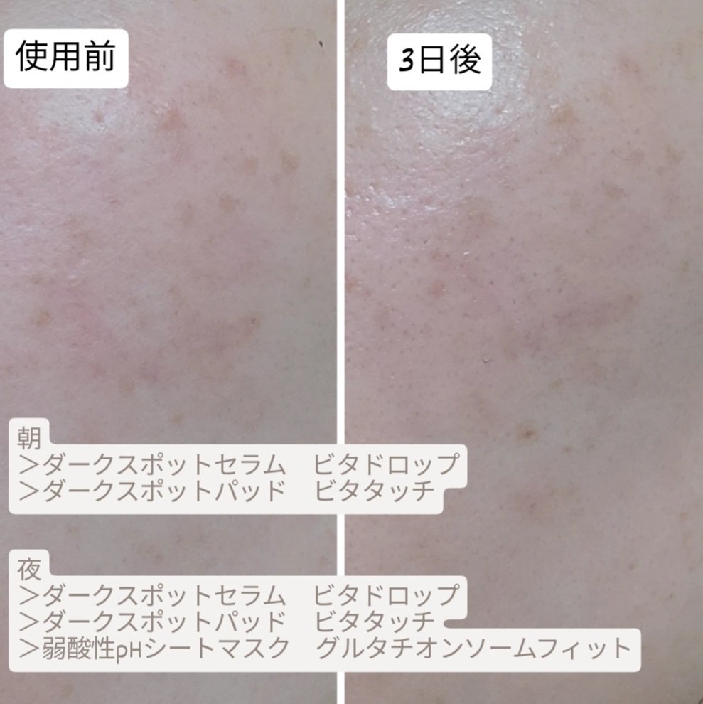 ナイアシンアミド、PlusSome Vita C、 Glutathiosomeの3つの成分を最適な比率で配合。 たった3日でシミやくすみが薄くなる! 純度98%のグルタチオンを詰め込んだカプセルが、肌の上で弾けながら有効成分を肌に効果的に吸収させる! 目には見えない隠れたシミもしっかりケア✨ 肌に水分を届けるカフェインと、パンテノール、トコフェロール配合で肌に活力を与えて健康な環境へとケア。