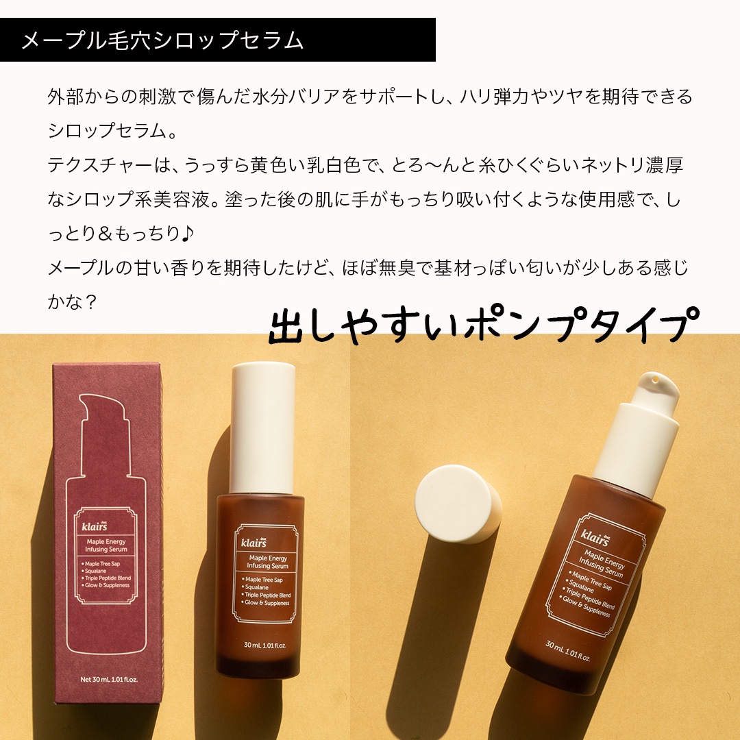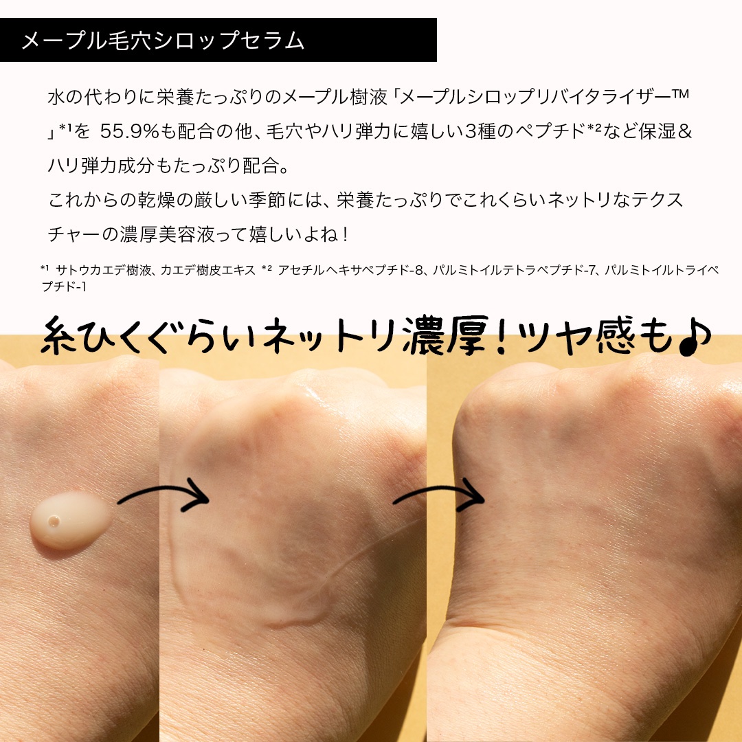 敏感肌のためのヴィーガン &エコフレンドリーなスキンケアブランド 2010年にソウルで生まれたスキンケアブランド 使用しているカエデ(メープル)樹液は氷点下5度から20度に迫る乾燥する冬を乗り越えるため1年にたった1度採取できる樹液で栄養分がたっぷり スネイルのように粘度があってびよーんと伸びる面白いテクスチャー。こういうテクスチャーは冬場使いたくなる☃️
