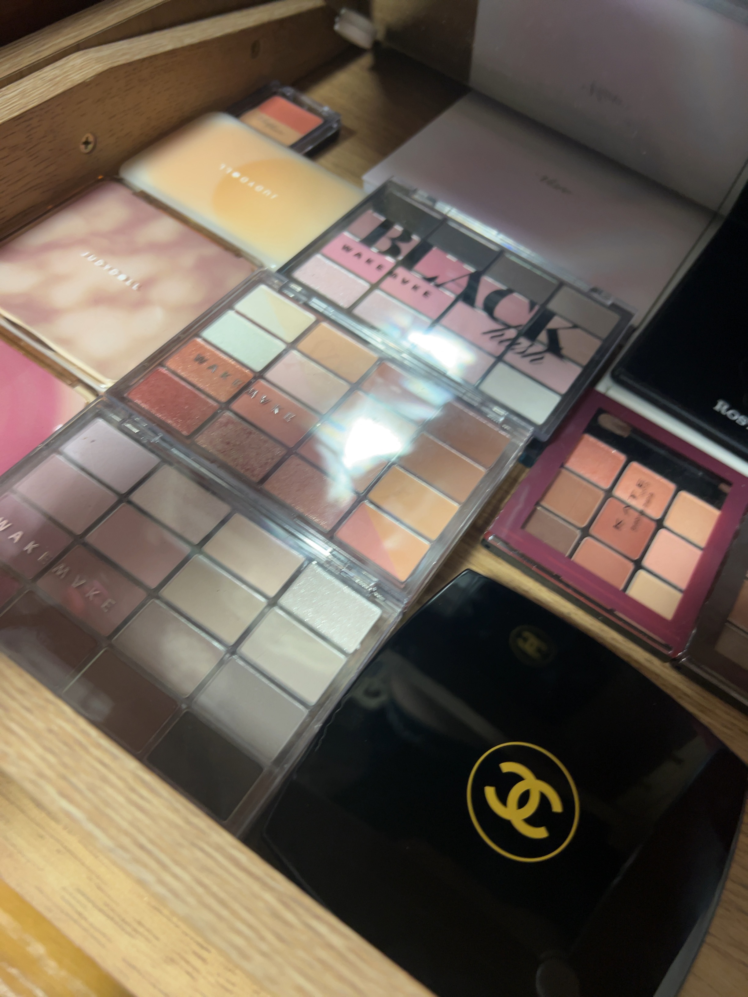 自分が本当に使うものかどうか把握する収納と考えています。 チークはチーク、ハイライトはハイライト、パウダーはパウダーの引き出しを決めています。 入らなかったら持っているものを見直し。入るだけの物を持つってのがこだわりです。