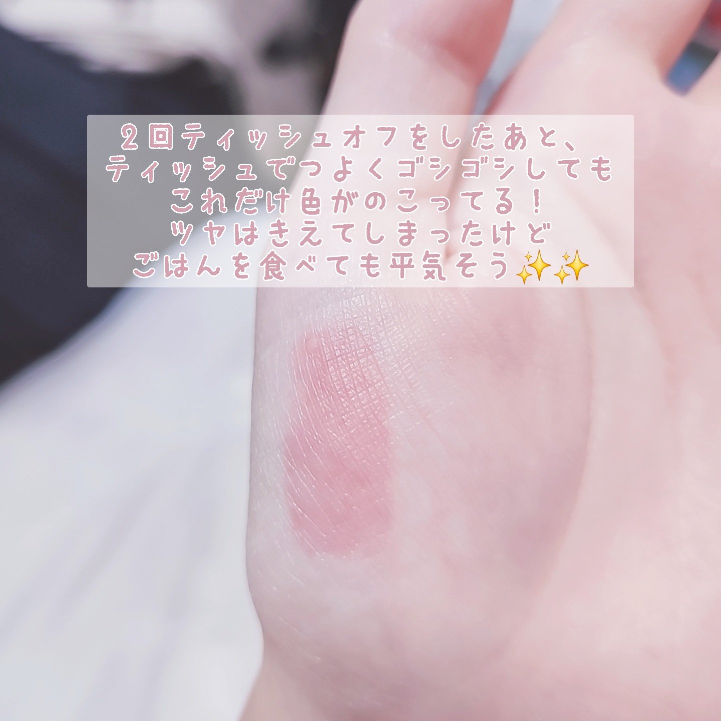 | めちゃくちゃ塗り心地が軽いのに、色のせてすぐティッシュOFFしても色がめっちゃ残る!! | 詳細を見る |