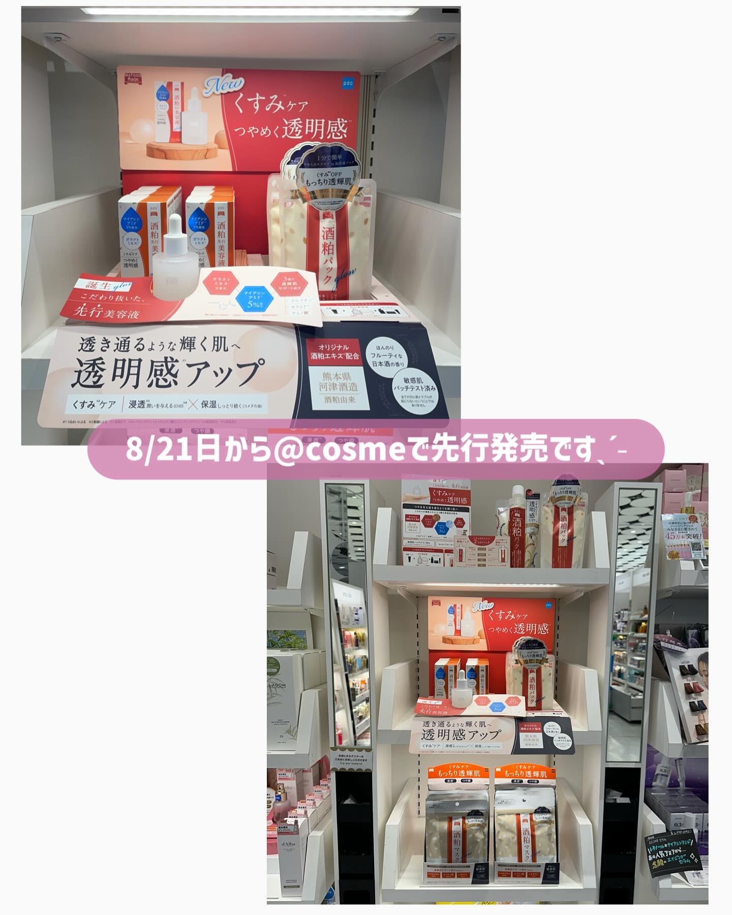 酒粕スキンケア商品を展開しているpdcのワフードメイド。新作としてこの秋冬に導入美容液が登場しました🤍 こだわりの酒粕エキス、3種の透輝肌サポート成分(保湿成分)を、ナイアシンアミド*1 5%、ガラクトミセス*3などうるおって透明感をアップさせる成分が目白押し! ほんのりとろみがあり、しっとりうるっとした使用感🩵 なじむと肌に吸い付くような保湿感を感じる使用感です。