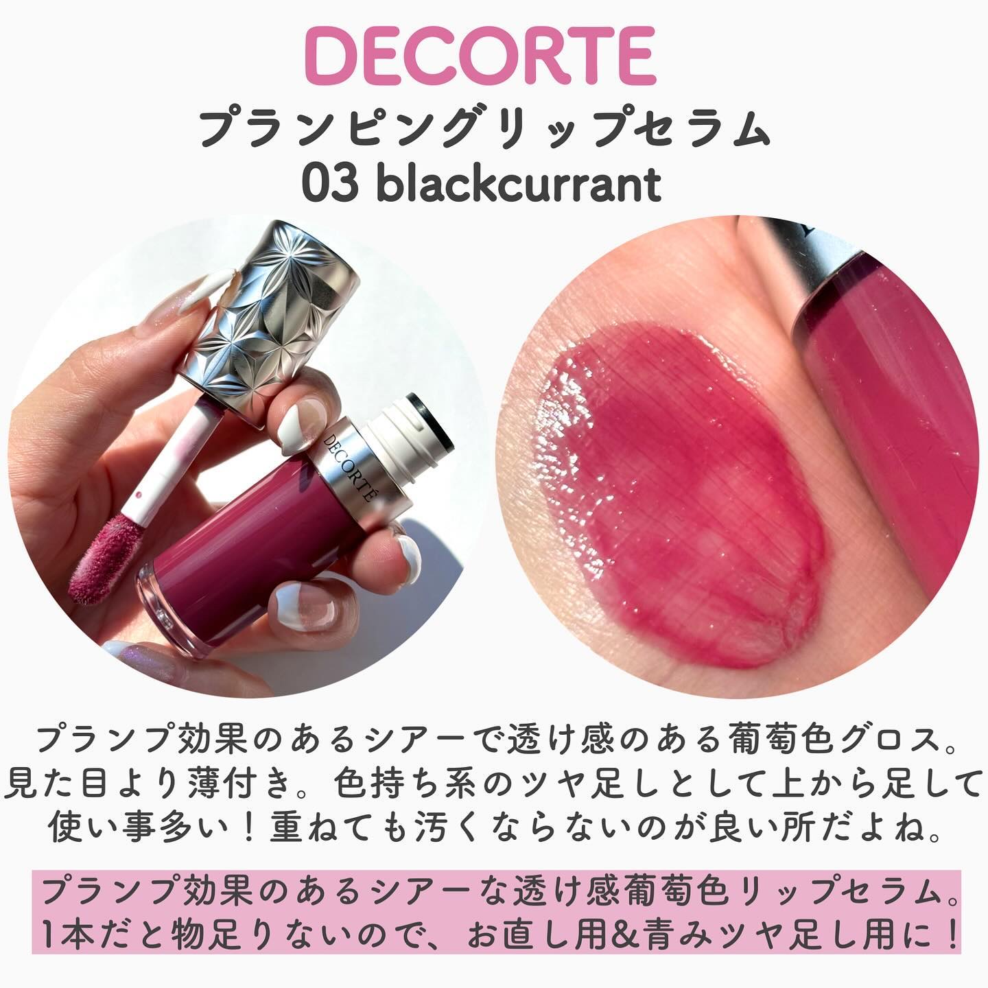 💄DECORTÉデコルテ プランピングリップセラム プランプレベル(+++) *03blackcurrantコスメデコルテの先行乳液から着想を得たエマルジョン効果とオイルの保湿感を1本に融合したリップセラム⚪︎乳液発想の柔軟リップケア⚪︎じん...