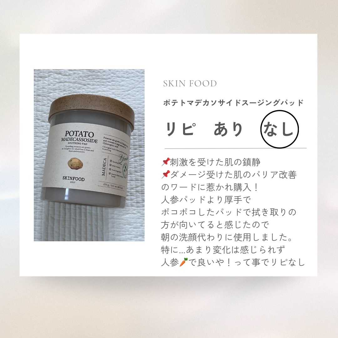 SKINFOOD SKINFOOD ポテト マデカソ スージングパッド | 3,080円 |