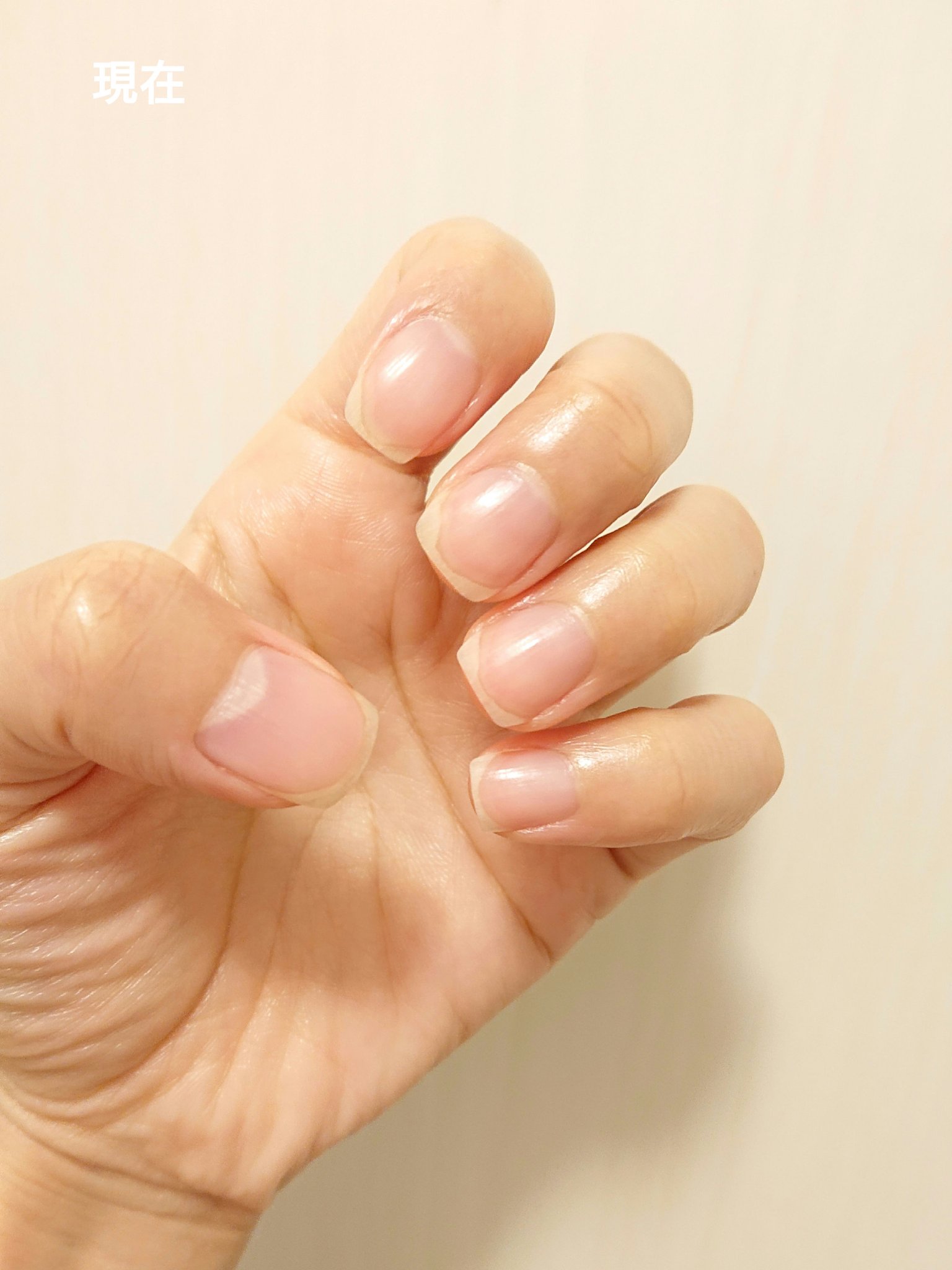ネイルオイルとハンドクリームを毎日塗り続けました! 親指が特に分かりやすくピンクの部分伸びていませんか? 他の指も若干伸びていました🥳 嬉しすぎる、、! ネイルオイルを塗ることによって、ささくれもできにくくなり手の清潔感がより出たかな! これからも続けて理想の爪目指していきます!💅