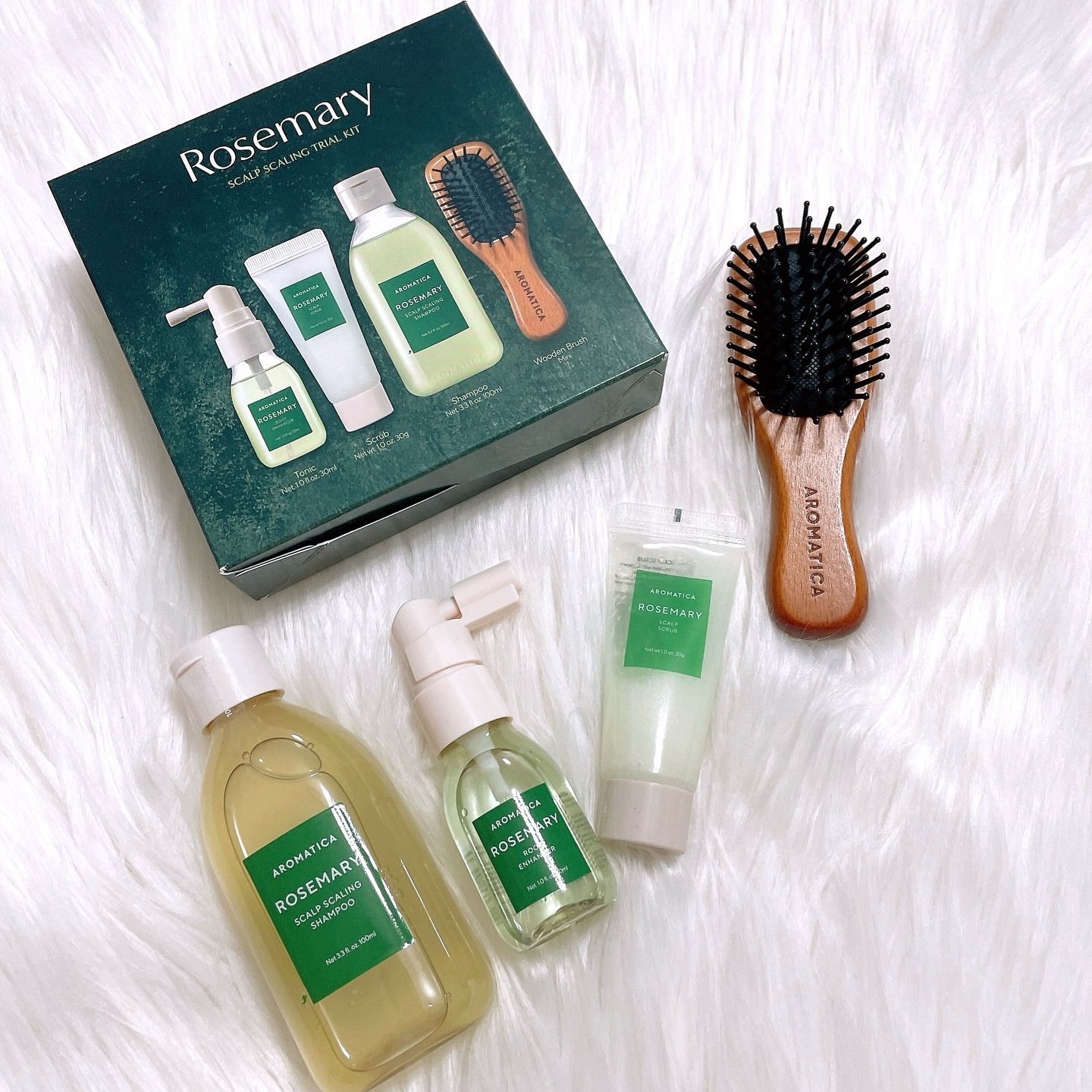 ホリスティックアロマテラピーをもとに製品の全ては合成香料と人体に有害な成分を取り除いたヴィーガンフォーミュラー処方 𖤐ローズマリースカルプスケーリングシャンプー 頭皮の角質やかゆみ緩和、頭皮の回復を促進し健康的で柔らかい髪質を保つシャンプー 人気商品を集めたトライアルキットは手軽に試せるしミニサイズだから旅行にも持って行きやすいよ✈️💎