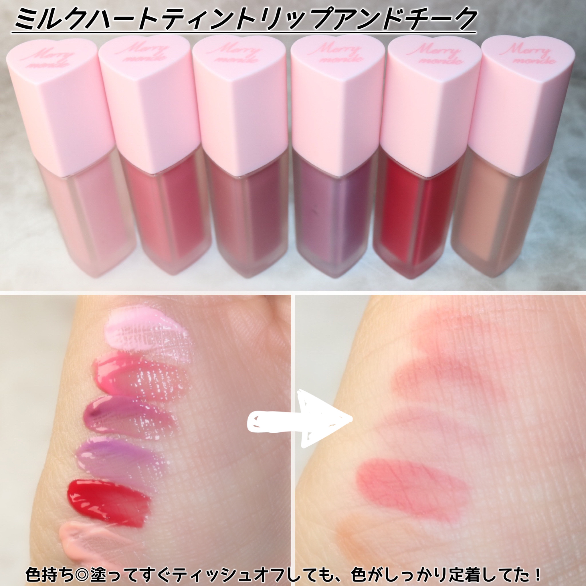 商品詳細情報Merrymonde ミルクハートティントリップアンドチーク