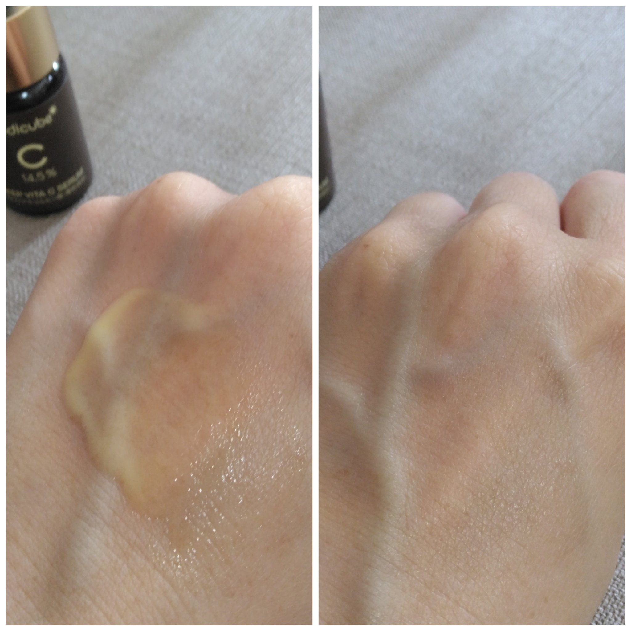 韓国🇰🇷ダーマコスメブランドの[medicube(メディキューブ)]のシミ消しケア。累計100万個販売突破の人気のアイテム! 7日間で肌がトーンアップすることが臨床試験で確認され、美白としわ改善もケアできる美容液✨ とにかく濃い! トロッと濃厚なのがわかります 高濃度ビタミンの証、独特の香りがします