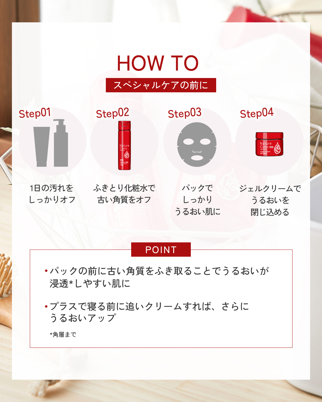 ふきとり化粧水、毎日使うべきではないって思っていませんか?ふきとり化粧水は毎日使うのはちょっと・・・という声を聞きます。毎日使うとお肌に負担を与えるというイメージが強いのかもしれません。ネイチャーコンクは、一気に角質を取り除くものではありませ...