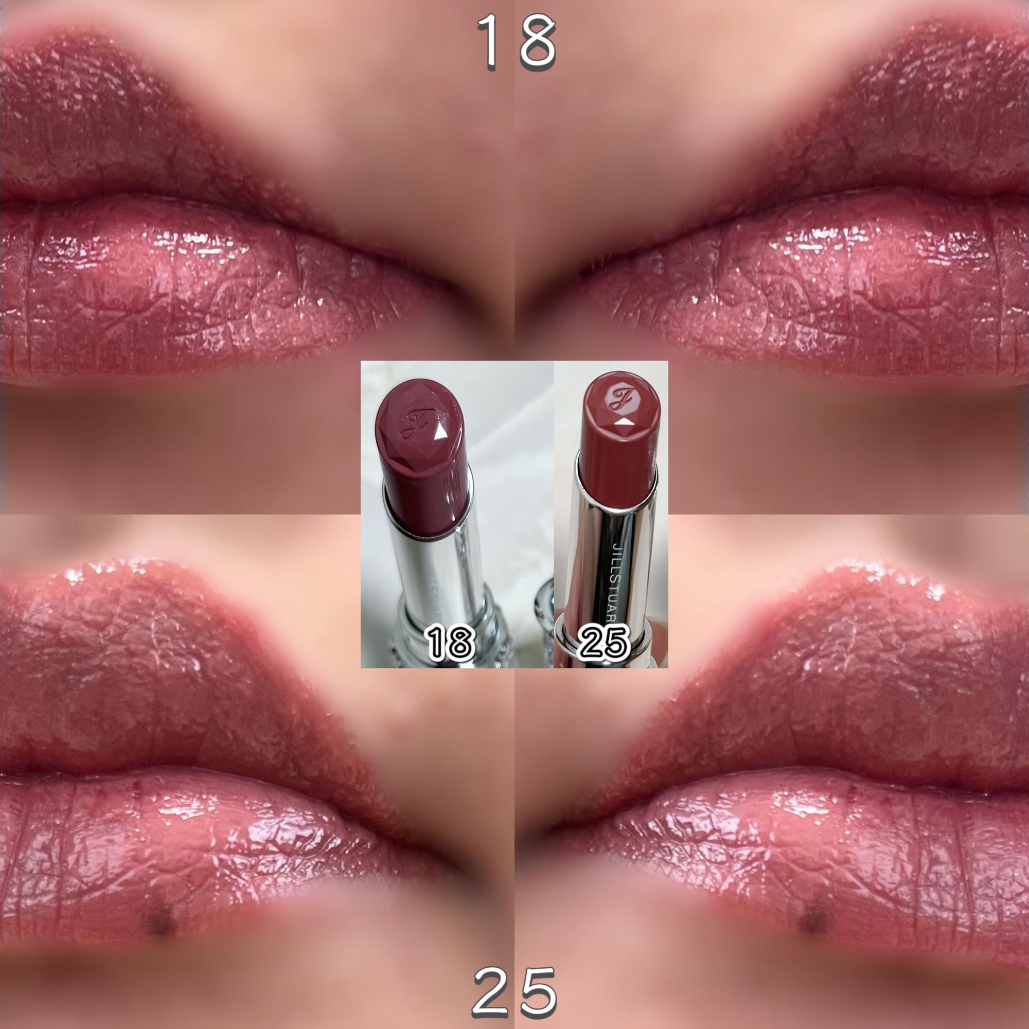 シャドウパレット 27番ローズミルクティー 上段のほうは白みがあり、青みも感じる。下段の方にいくにつれ、だんだんくすみが強めに出てきて、青みは少し弱くなってくる感じ。 白桃ウーロン系メイクが好きな方に推したい!ラメが入っているものは2色で、どちらもチラチラとした微細なラメ。 ジューシーデュイティント 25アールグレイローズ 25は、公式の唇の画像より青みがありました。ブルベ夏、イエベ秋の方が得意そう。