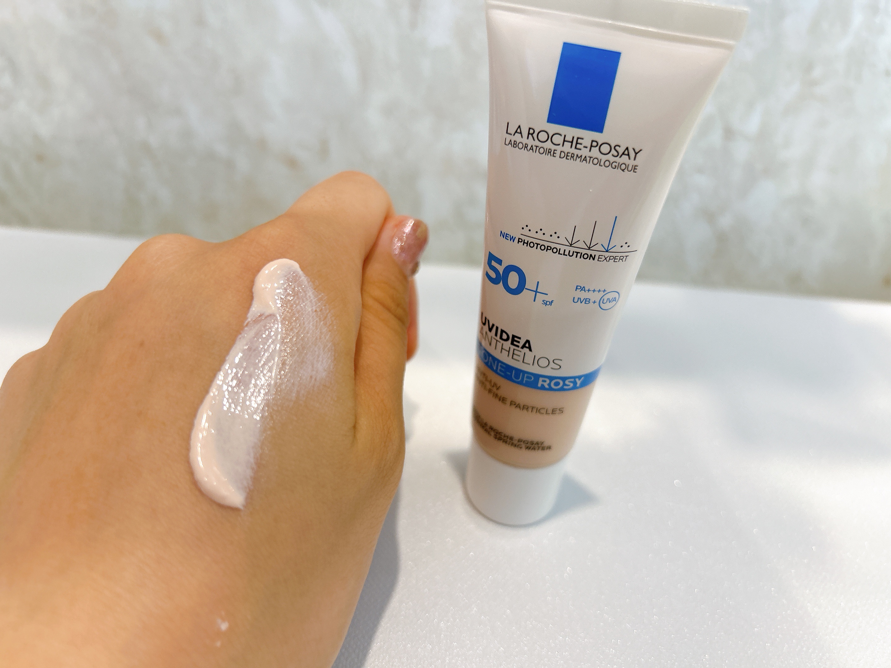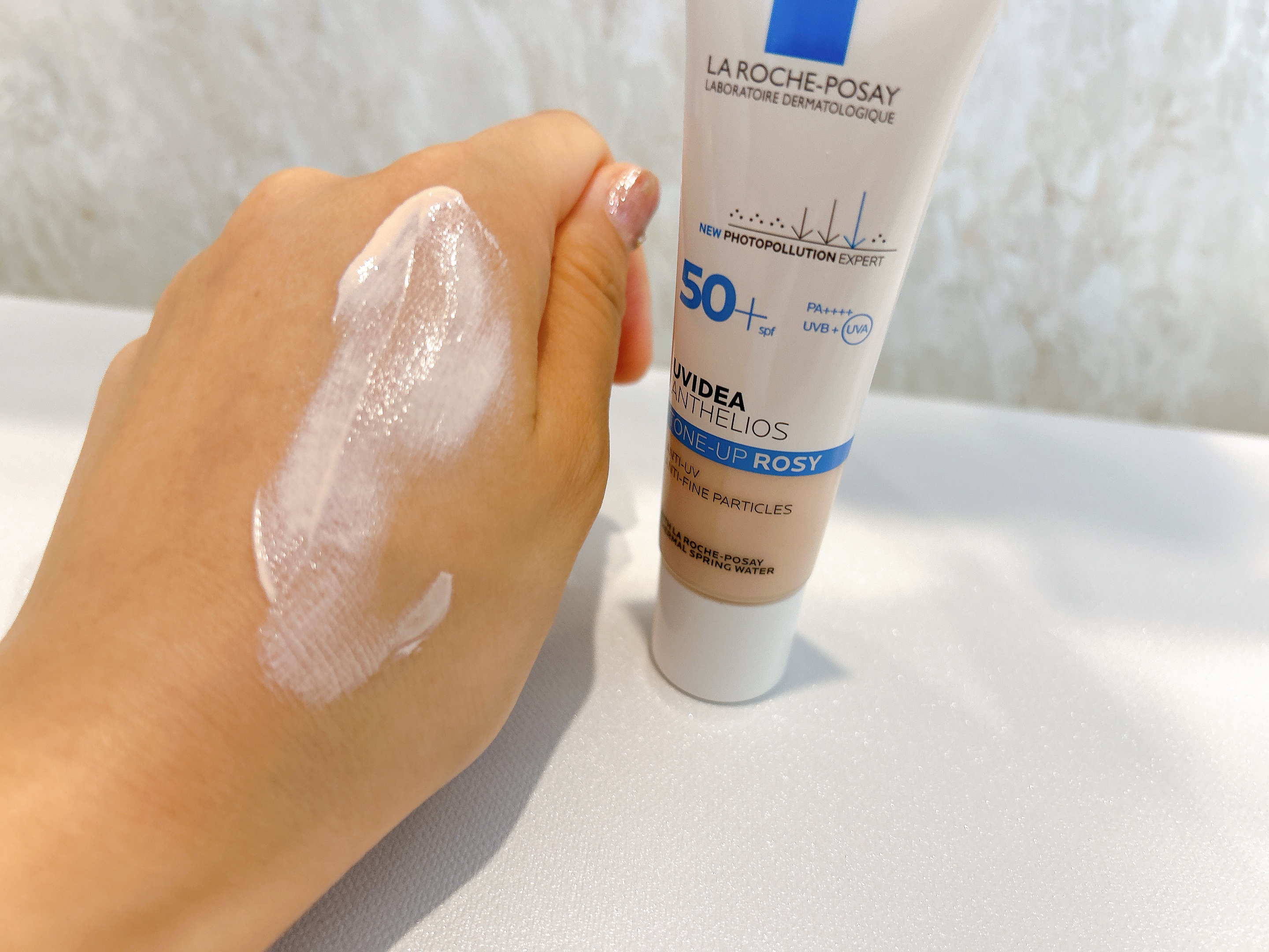 内側から発光してるみたいなツヤ感✨ 【ラ ロッシュ ポゼ/UVイデア XL プロテクショントーンアップ ローズ】 SPF50+/PA++++ スルスル滑らかに伸びる心地よいテクスチャー!! 密着感と保湿感があり、お気に入り◎ トーンアップローズはメイクアップ効果により、血色感を演出してくれる 仕上がりイメージです🌹