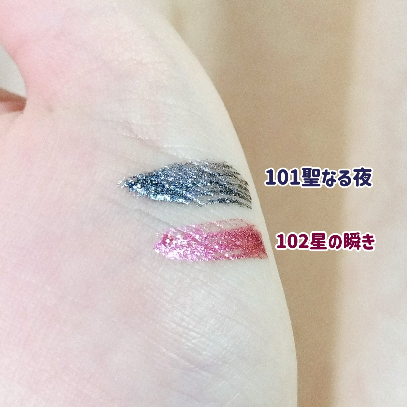 - <101 聖なる夜(限定)> 水、エタノール、ホウケイ酸(Ca/Al)、BG、TEA、アクリレーツコポリマー、カミツレ花エキス、セイヨウハッカ葉エキス、トウキンセンカ花エキス、ラベンダー花エキス、ローズマリー葉エキス、DPG、EDTA-2Na、(VP/VA)コポリマー、(アクリレーツ/アクリル酸アルキル(C10-30))クロスポリマー、カルボマー、キサンタンガム、シリカ、ホウケイ酸(Ca/Na)、ラウリル硫酸Na、酸化スズ、フェノキシエタノール、メチルパラベン、Al、マイカ、銀、酸化チタン、酸化鉄 <102 星の瞬き(限定)> 水、エタノール、合成フルオロフロゴパイト、ホウケイ酸(Ca/Al)、BG、TEA、アクリレーツコポリマー、(PET/Al)ラミネート、カミツレ花エキス、セイヨウハッカ葉エキス、トウキンセンカ花エキス、ラベンダー花エキス、ローズマリー葉エキス、DPG、EDTA-2Na、(VP/VA)コポリマー、(アクリレーツ/アクリル酸アルキル(C10-30))クロスポリマー、カルボマー、キサンタンガム、シリカ、ラウリル硫酸Na、酸化スズ、フェノキシエタノール、メチルパラベン、銀、酸化チタン、酸化鉄