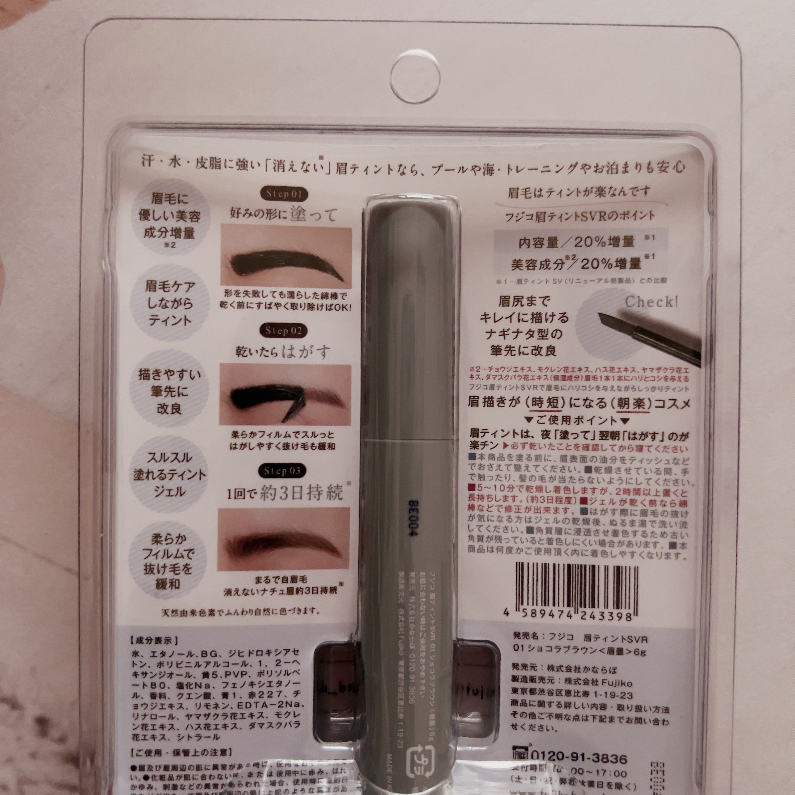 - 累計販売数 474万個(※1)を突破した「フジコ眉ティント」が2020年7月にさらにアップグレード! 汗・水・皮脂に強く、1回で約3日(※2)消えにくい特性はそのままに、内容量、保湿成分(※3)ともに20%増量。 また、筆先を眉尻まで綺麗に描ける“ナギナタ型”に改良! まるで“自眉毛”のように自然に色づく眉ティントです。 ※1:2022年4月末時点の累計販売数 ※2:効果・持続時間には個人差があります ※3:チョウジエキス、ヤマザクラ花エキス、モクレン花エキス、ハス花エキス、ダマスクバラ花エキス