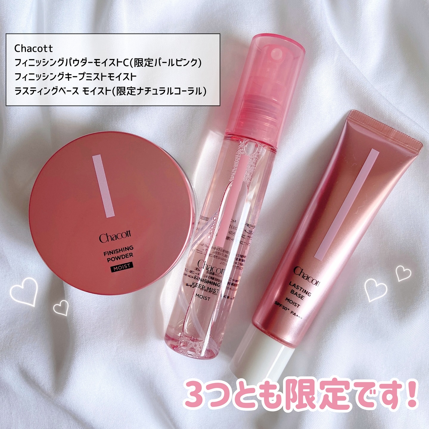 保湿×くずれにくさを考えて作られたコスメ🎀 チャコット・コスメティクスのピンクのコスメ 限定モイストシリーズ3つをスウォッチ♡ ベルガモットの優しい香り☺️ メイクの最後にササッと仕上げられる✨️ミストタイプだから楽ちん。 ツヤ感の出る微細パール配合✨️ ピンク系のコントロールカラーで保湿しながら血色感も🙆♀️