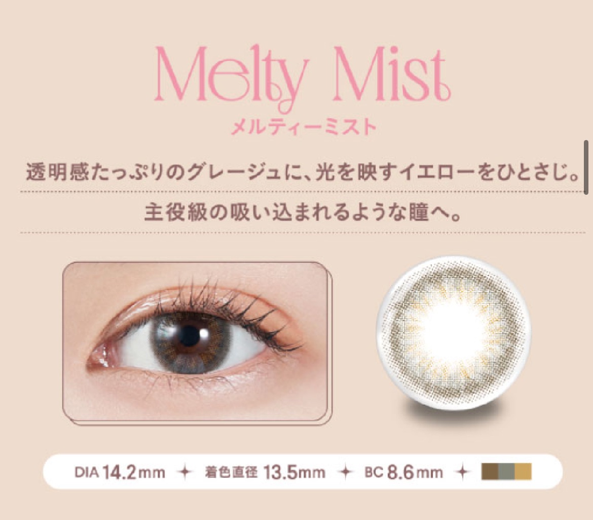 - ※2025年6月以降、商品パッケージ裏面・側面の一部表記を変更いたします。尚、これにかかる商品の交換・返品は承っておりません さりげなくいつもと違う自分をアピールしたい。 そんな女の子たちにいつまでも「いま欲しい!」と思ってもらえるレンズを目指してデザインしました。 落ち着きすぎず、明るすぎない、ナチュラルサイズで目になじみながら発色を感じられるデザインをそろえています。 カラーコンタクトレンズの不適正使用による眼障害の危険性等などがあります。 ●コンタクトレンズは高度管理医療機器です。不十分な洗浄・消毒など不適切なケアや、長時間・交換期間を超えた装用により、アレルギー性結膜炎、角膜感染症、角膜潰瘍等の重篤な眼障害が発生する危険性があります ●ご使用前に取扱説明書を確認してください 使用上の留意事項 ●眼科医院等を受診してからお求めください ●眼に異常を感じたら直ちにレンズ使用を中止し、お近くの眼科等で診察を受けてください ●医師の指示にしたがってご使用ください ●コンタクトレンズを装用する場合、自覚症状がなくても、眼科医院等での定期検査を受けてください ●レンズに不具合がある場合は使用しないでください