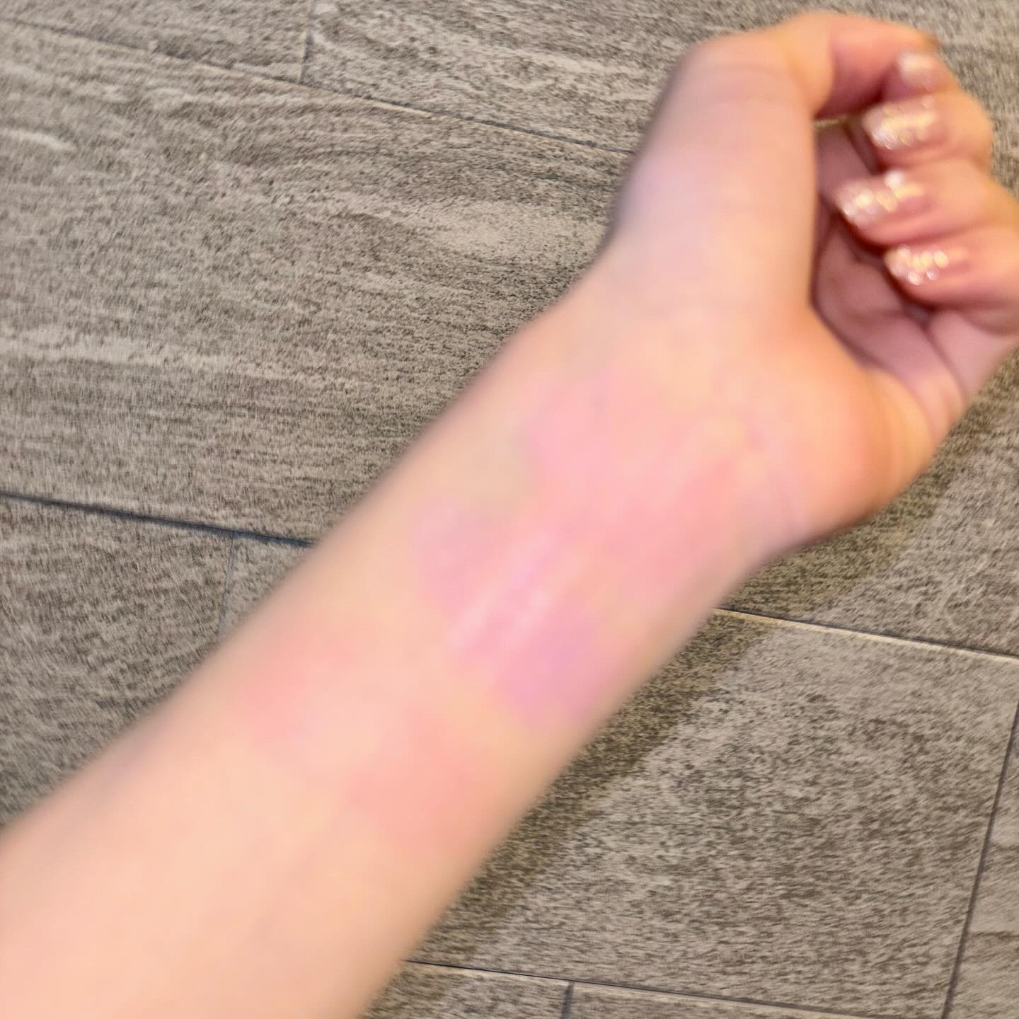 液体自体は蛍光パープルでびっくりするんですが、伸び広げると私の大好きなほんのり青みピンク🥺🩷 水彩という名の通りみずみずしいテクスチャなのでさらっとつけられる!! さらに塗ったあとのちょうど良いツヤ感とちゃんと肌を透かしてくれる透明感ときたらプチプラの域を超えています...