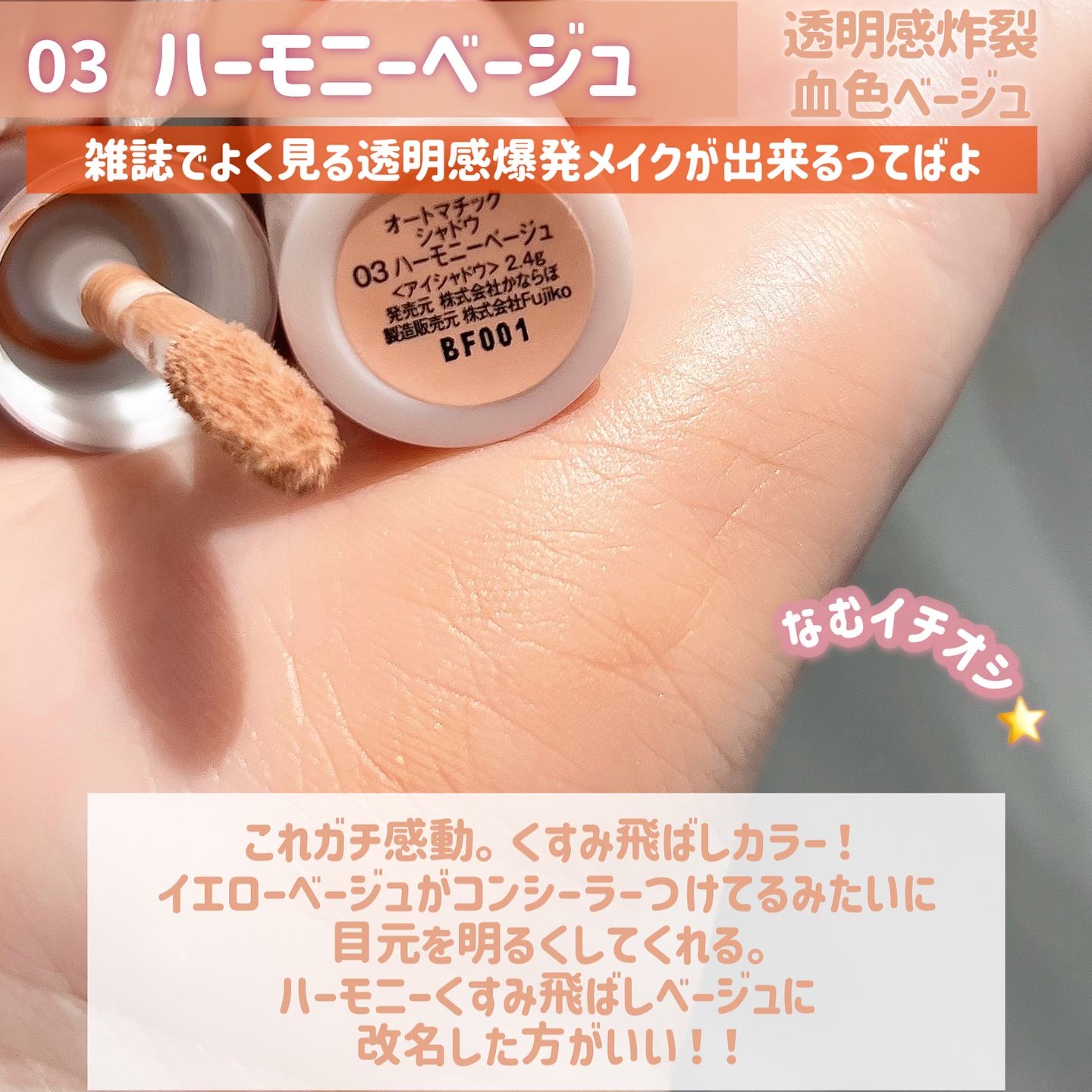 これ一つでアイメイク完成✨ フジコのオートマチックシャドウです👏🏻 ハーモニーピンクって名前から可愛い🤍 塗った瞬間顔色がぱって明るくなる好印象カラー🥹💕🎵 崩れ・ムラ・色落ちの原因であるまぶたの余分な皮脂を吸着するみたい💭