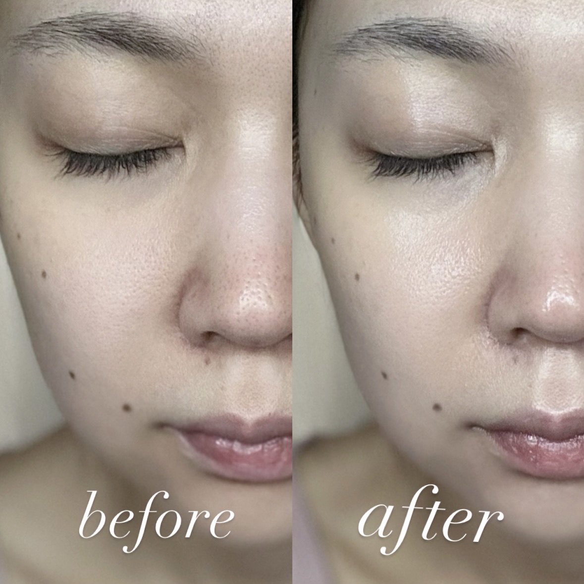 買って良かった😭透明感ましまし💜 ファンデの下に仕込んでおくと保湿感もツヤもラメも欲張れる! アイメイクのベースにもできた◎ マスクつけた時に鼻の頭のハイライトだけヨレる問題解決しそう!