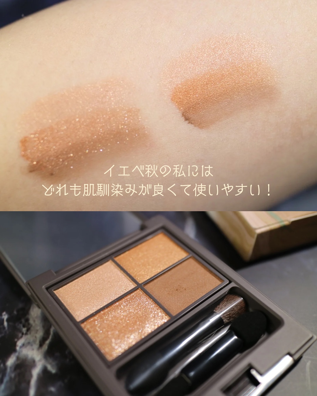 イエベ秋さん向けカラーのアイシャドウ イエベ秋さんが似合うブラウン系のパレット🤎 粉質もよく粉落ちしなかったです! 私はラメが可愛いくて綺麗でお気に入り💫✧ 肌なじみが良く垢抜けた目元を作れます👀🤍