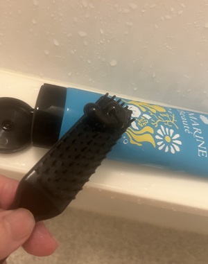 海由来美容成分12種&マリンブーケの香り、ということだそう 濡れた手でもOKで放置時間は3分(使用時間の目安として) ブラシがまた使いやすくてこの荒さがほどよくて髪にするするのばせます
