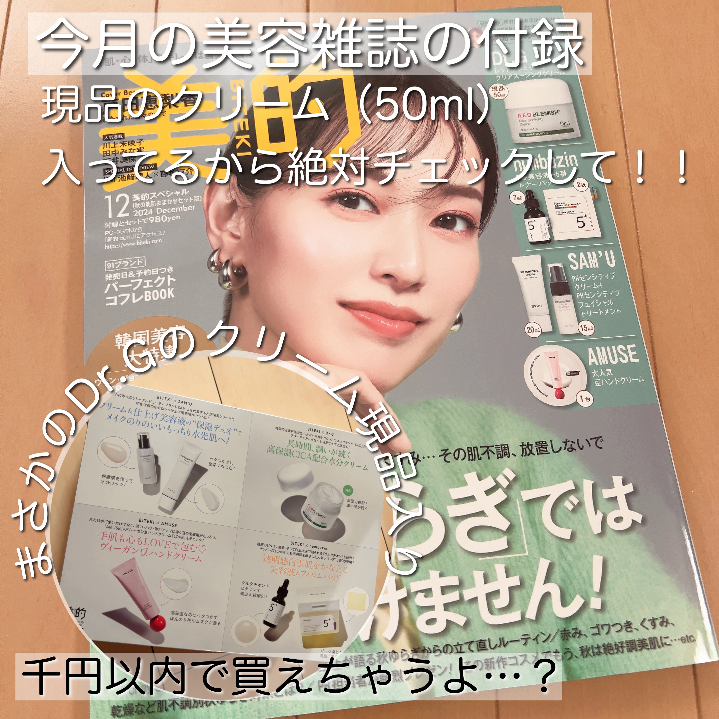 気になっていたアイテムが付録になっていたので購入しました♡ 特にDr.Gのクリームとnumbuzinの5番 白玉グルタチオンC美容液に興味があったので嬉しい付録です! さっそく使ってみましたが、SAM'UのPHセンシティブクリームの香りがすごく良くて…!かなり癒されました…♡ Dr.G レッドブレミッシュクリアスージングクリーム (保湿クリーム) 50ml(現品) 2,900円(楽天価格)