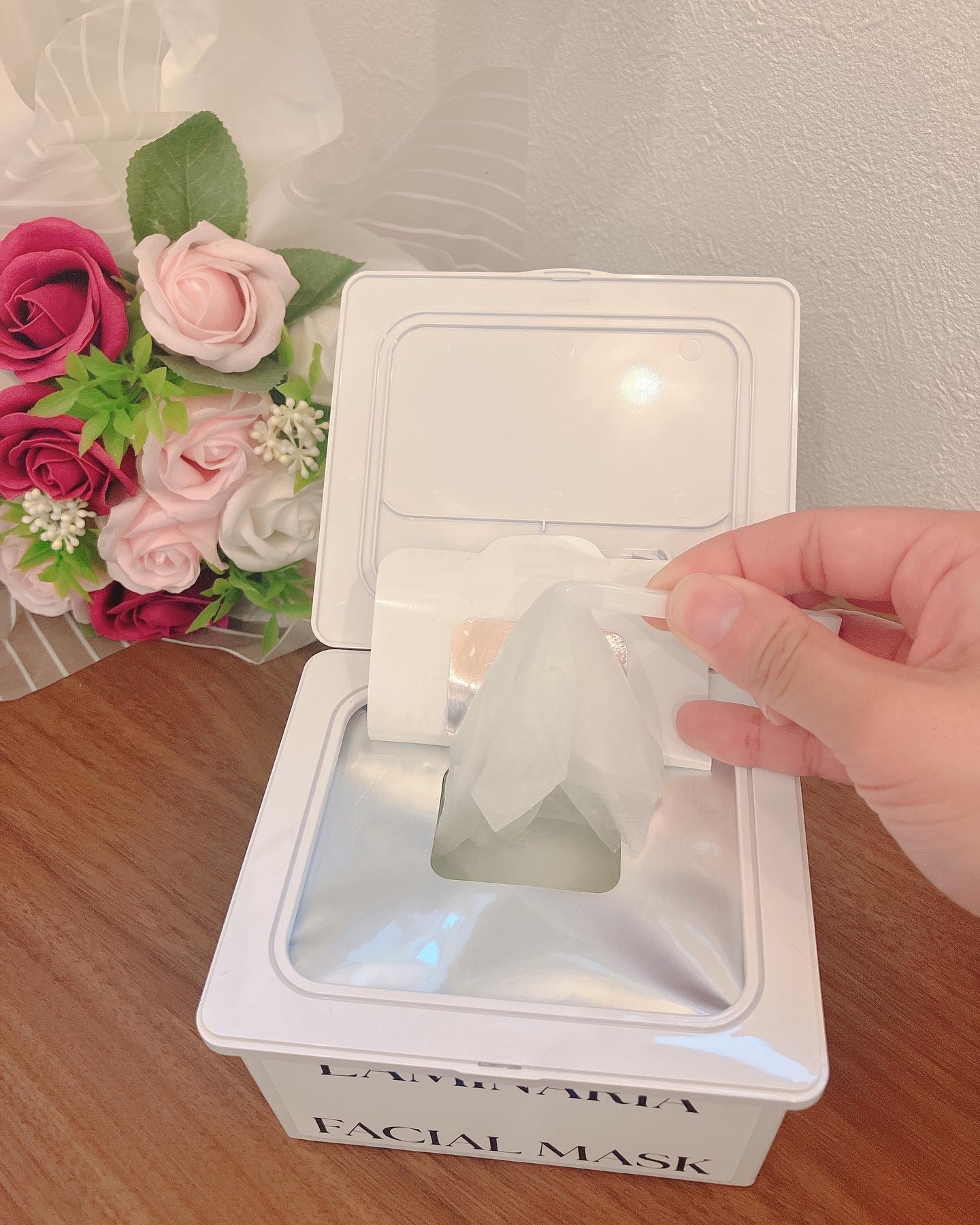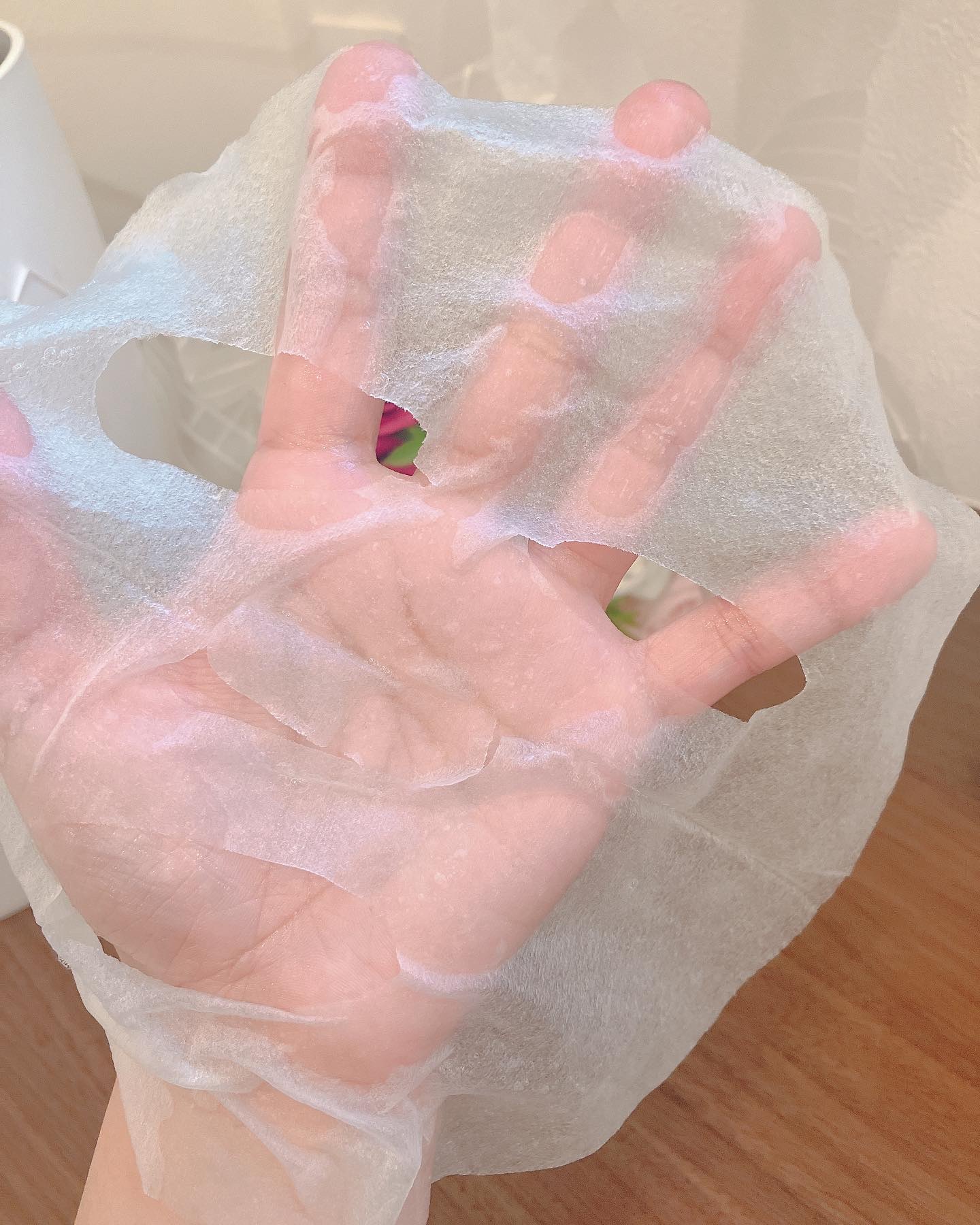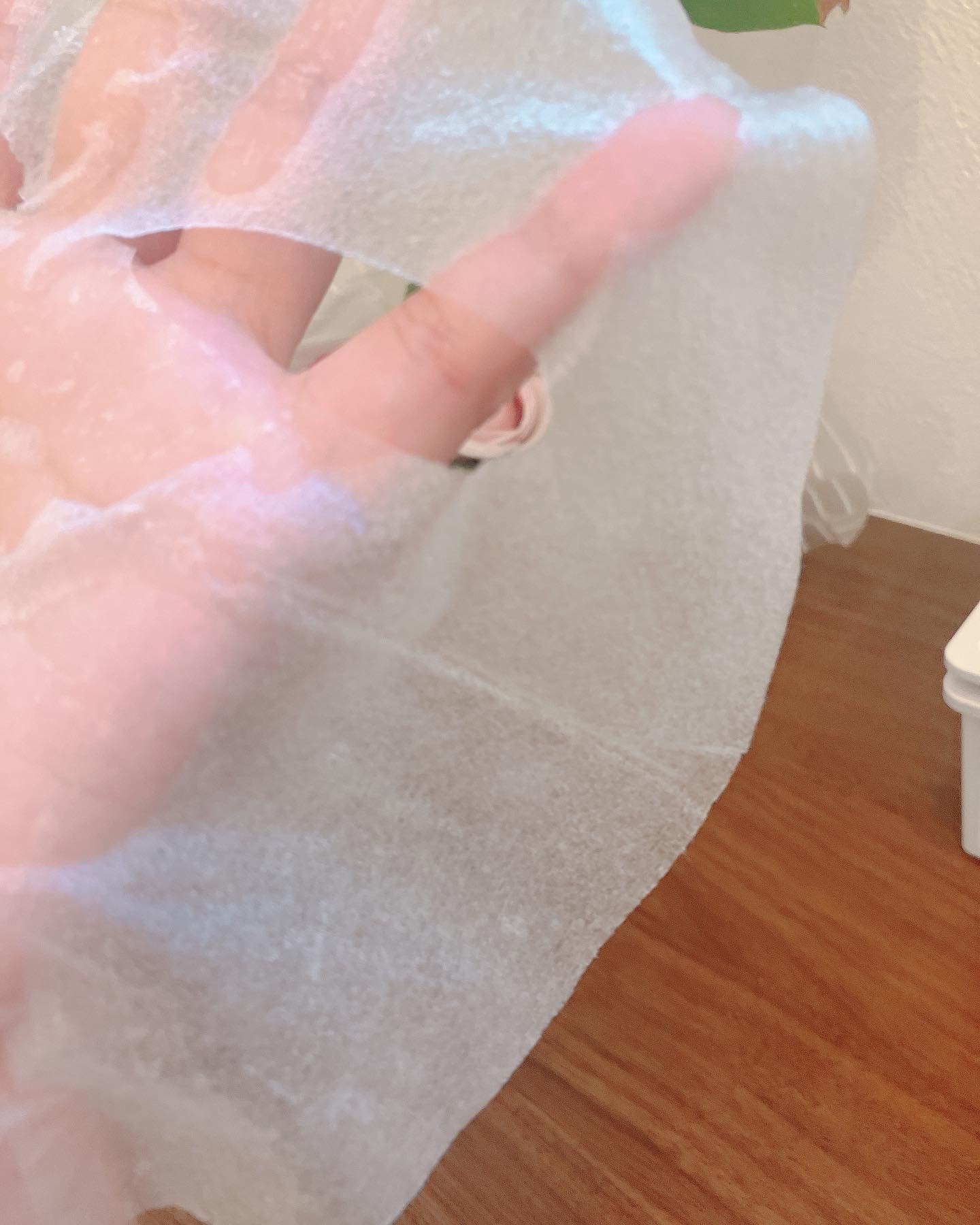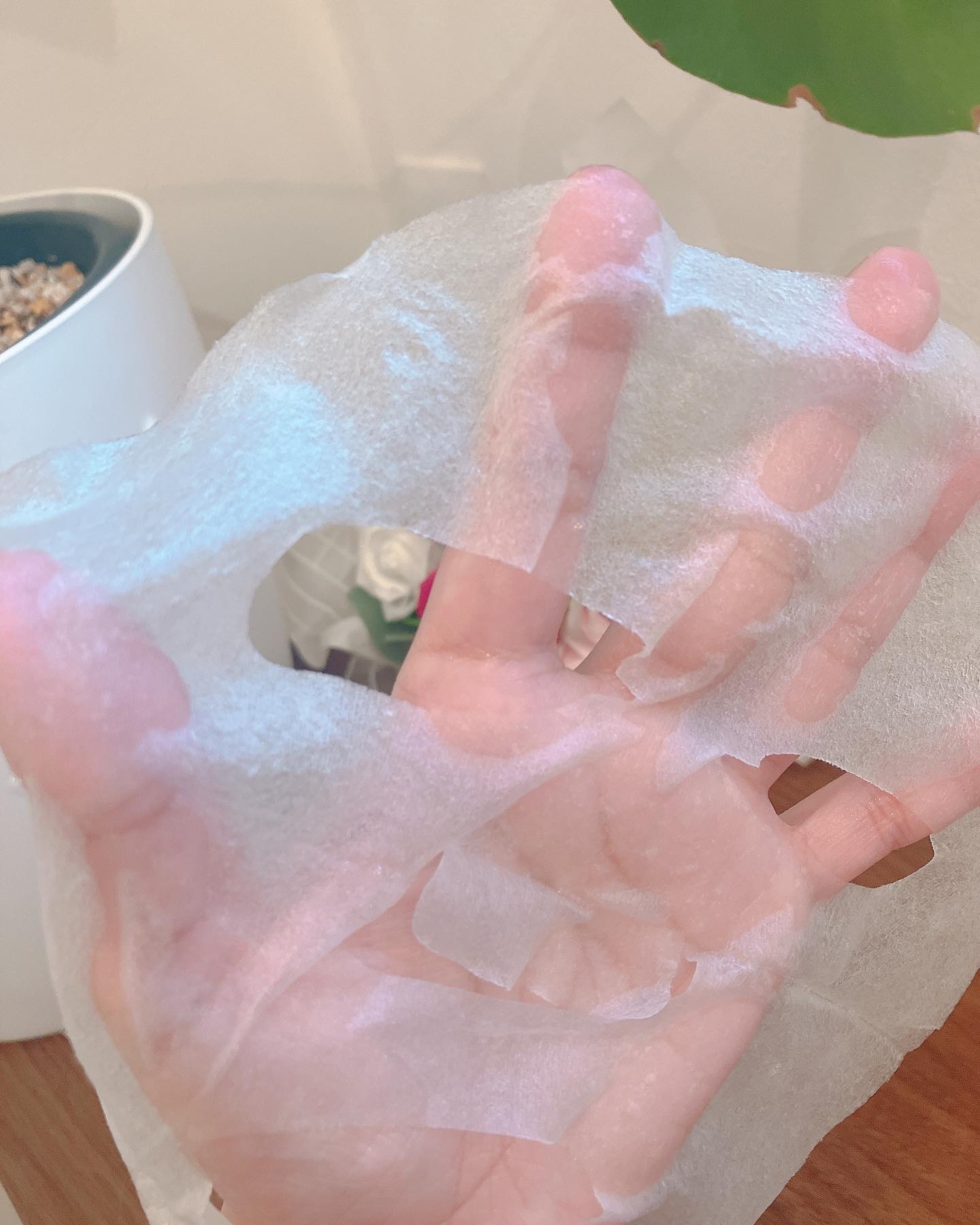 マコンブ配合で糸引くテクスチャーのエッセンスがたーっぷりしみしみのフェイスマスクお試し✧*。 薄くてしっかりした生地にエッセンスがたっぷり〜🩷 5-10分間置いてからはがして残ったエッセンスを優しく押し込むようにすればOK👌🥰 保湿&肌を健やかにしてくれるよ🩵 マコンブ成分だけでなく5種のシカまで配合されてるよ💚🍃