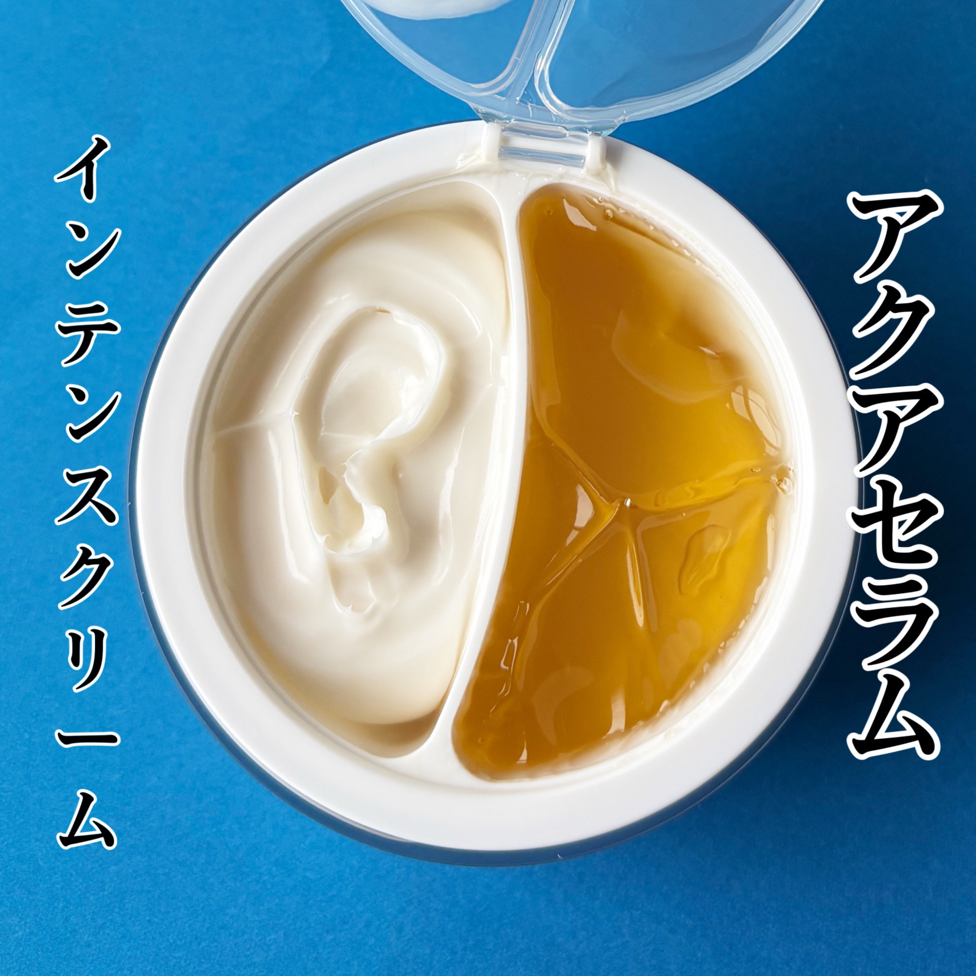 - アクサセラムとインテンスクリームのデュアル・フォーミュラで肌のタイプやコンディションに合わせて 比率を調節してカスタマイズ・ケアします。 ・アクアセラム:ヒアルロン酸、パンテノール、ツボクサエキス*が含まれた、さっぱりとした使用感で肌に水分を与え肌のキメを整えます。*ヒアルロン酸・パンテノール・ツボクサエキス(いずれも保湿成分) ・インテンスクリーム:イタリア産ホワイトトリュフ*が含まれた、もっちりした使用感で肌にうるおいを与えツヤのあるもち肌へ導きます。*ツベルマグナツムエキス(保湿成分) イタリアヴィーガン認証V-LABEL取得 皮膚低刺激テスト済み *全ての方に皮膚刺激が発生しないということではありません。 【使い方】 1. 洗顔後、スパチュラで肌のコンディションによって、セーラムとクリームを適量を取り、 ミックスしてから顔全体に優しく塗り広げ、 吸収させます。※ 必要に応じて、アクアセラムとインテンスクリームは単品でも使用できます。 【使用上の注意】 お肌に異常が生じていないかよく注意して使用してください。化粧品がお肌に合わないとき即ち次のような場合には、使用を中止してください。そのまま使用を続けますと、症状を悪化させることがありますので、皮ふ科専門医等にご相談されることをおすすめします。 (1)使用中、赤味、はれ、かゆみ、刺激、色抜け(白斑等)や黒ずみ等の異常があらわれた場合 (2)使用したお肌に、直射日光があたって(1)のような異常があらわれた場合