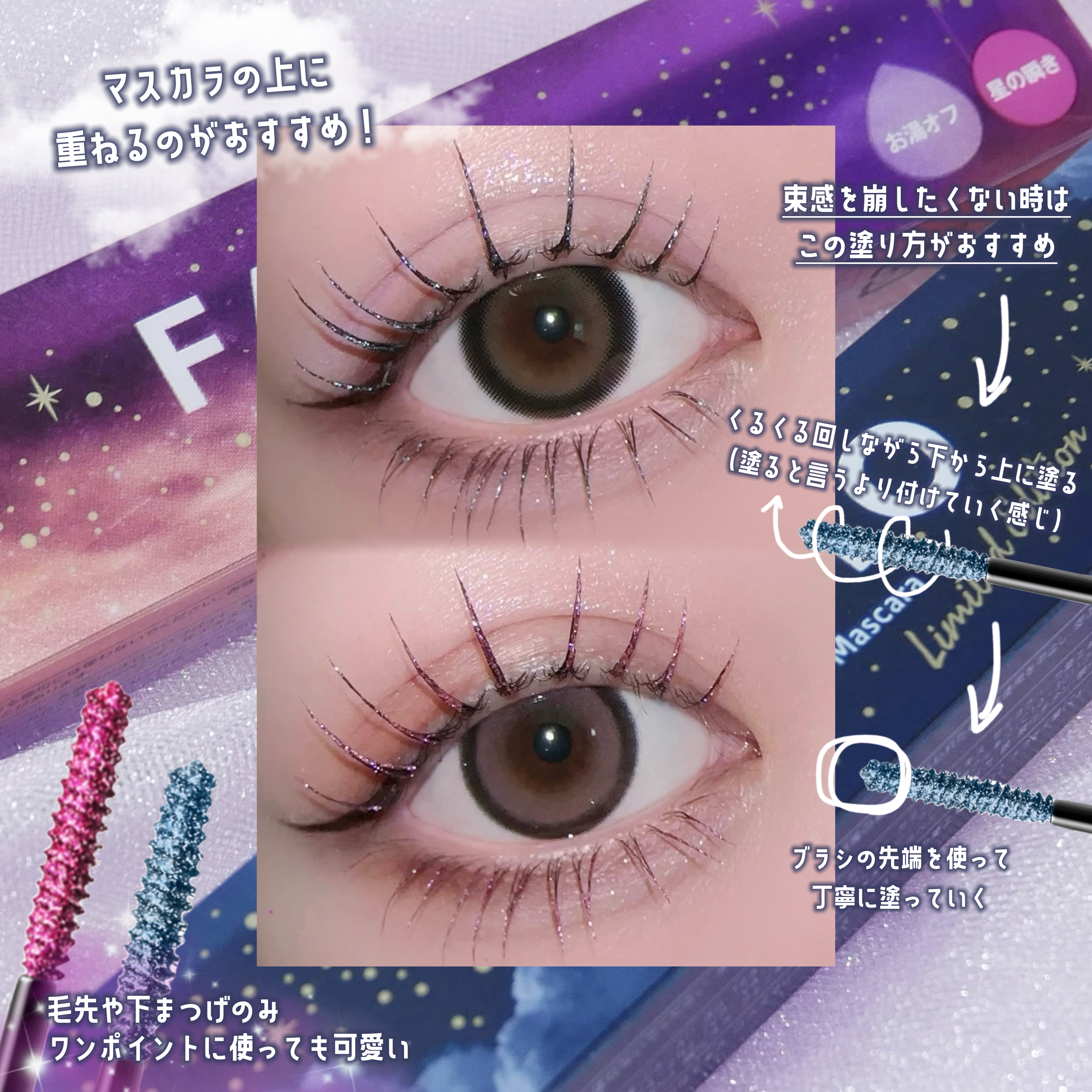 高輝度パールとラメが瞬きするたび輝くグリッターマスカラ💎 澄んだ夜空に無数の星屑が散りばめられたようなクールで煌びやかなネイビー グリッター×パールで華やかなんだけど繊細な輝きで普段使いにも使えるマスカラ☝️