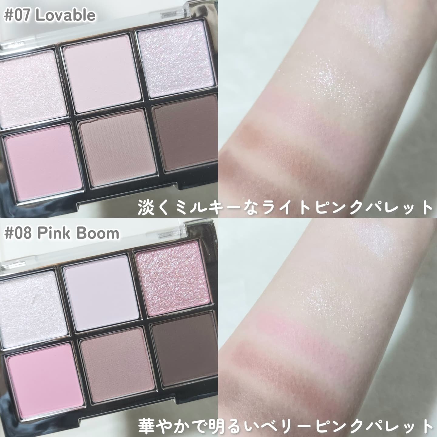 夜空にライトアップされた満開の桜をイメージしたチークと、 儚く舞い散る花びらのような薄桜色のハイライト🌸 ぷにっとした質感と 濡れたようなツヤ感が◎ チラチラっときらめくパールもかわいすぎる💘 まぶたに塗っても透明感が出て良い感じ✨