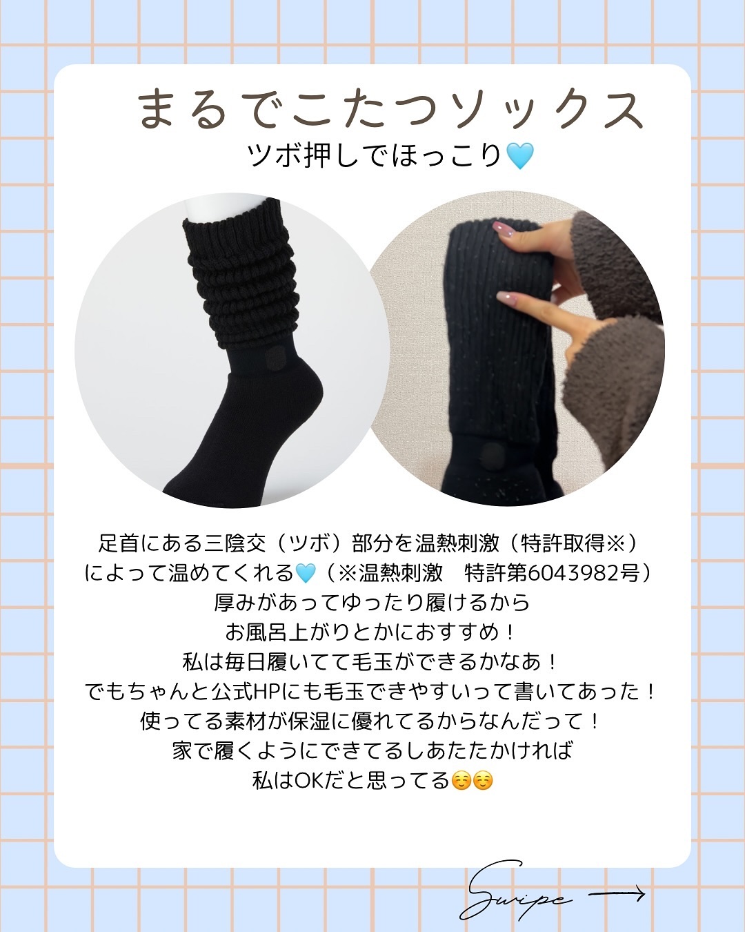 @kairo.socksぽかぽかカイロソックス遠赤外線セラミックを練り込んだ繊維を使用したもこもこソックス履くだけで+3.6℃※ってだけあって履くとぽかぽか締め付け感もなく膝下までしっかり長さがあるので末端冷え性の私にはすごく暖かく感じました...
