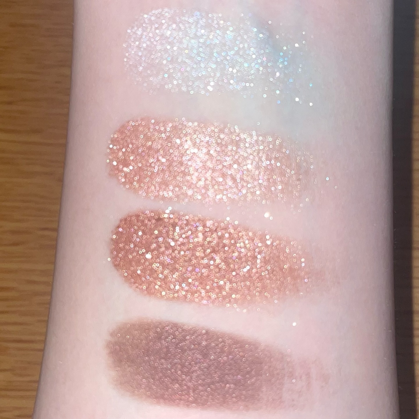 100ドリームズ 使いやすいヌードピンクです。これが1番普段使いしやすいと思います。指でポンポンするとシルバーのラメがキラキラです✨ 353リエゾン ライトローズウッド。この色が1番ラメ感が強い気がしました。実物は思ったよりピンクのラメがキラキラですが、他にこのようなリップを見たことがないので即決でした! リップ下地などは塗らずに、直でこちらを塗った方が色持ちが良いとBAさんが言っておりました!指でポンポンするとラメがキラキラしてくるのでほんとに可愛いです!
