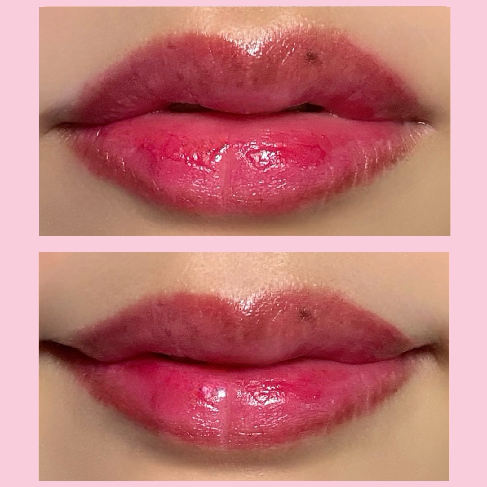 めちゃくちゃ感動しちゃいました(泣 縦じわなどが目立ちにくく、 透明感溢れるぷっくり口に!!!! ガラスの輝きみたいにコーティングを してくれてるような感じです! ベタつきがあまりない印象でした😭 ・可愛さもあり大人っぽさもあるカラー グロスがいい香り