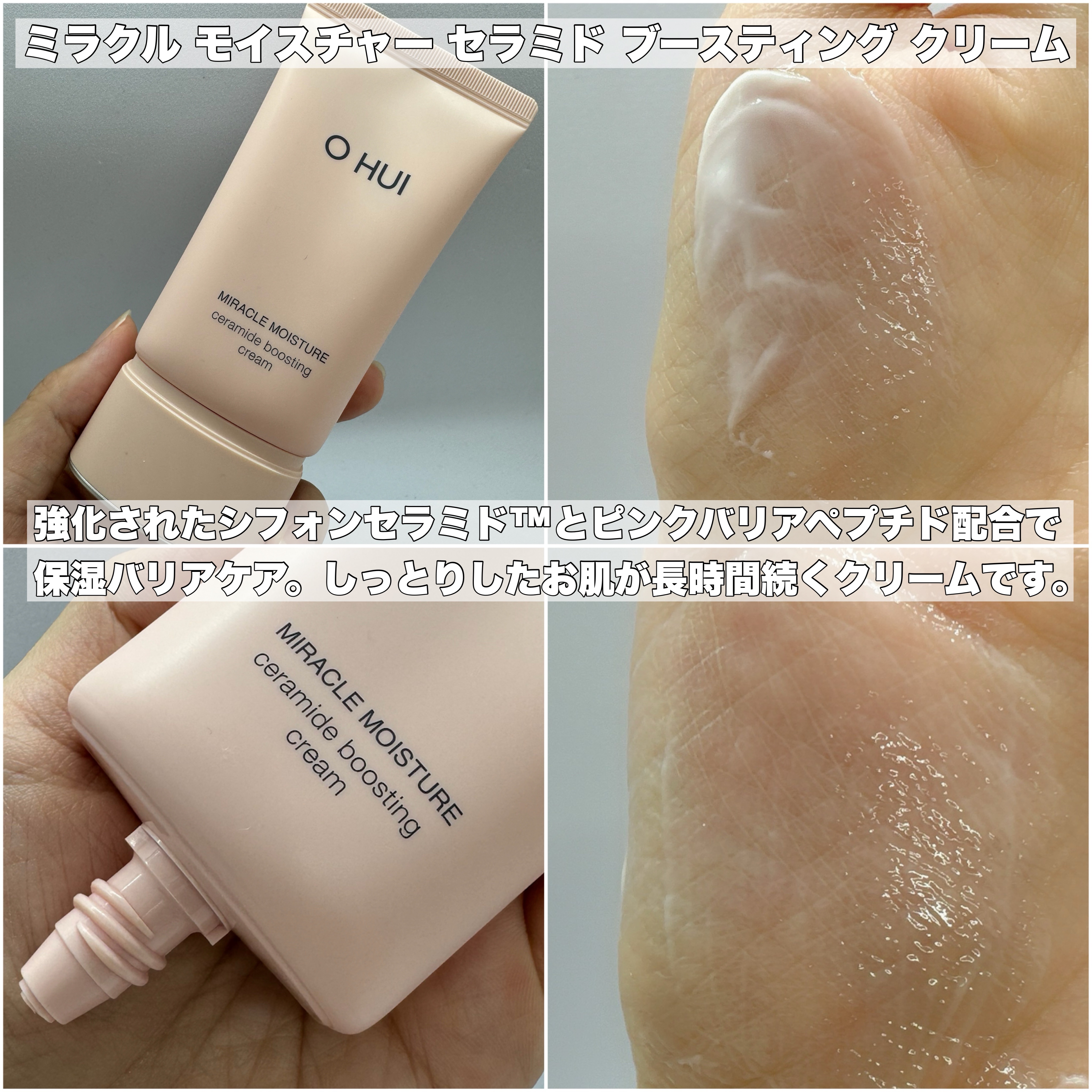 韓国のコスメブランドOHUIのクリームを使いました! 強化されたシフォンセラミド™とピンクバリアペプチド成分配合! なめらかなクリームテクスチャーで肌なじみが良いです!