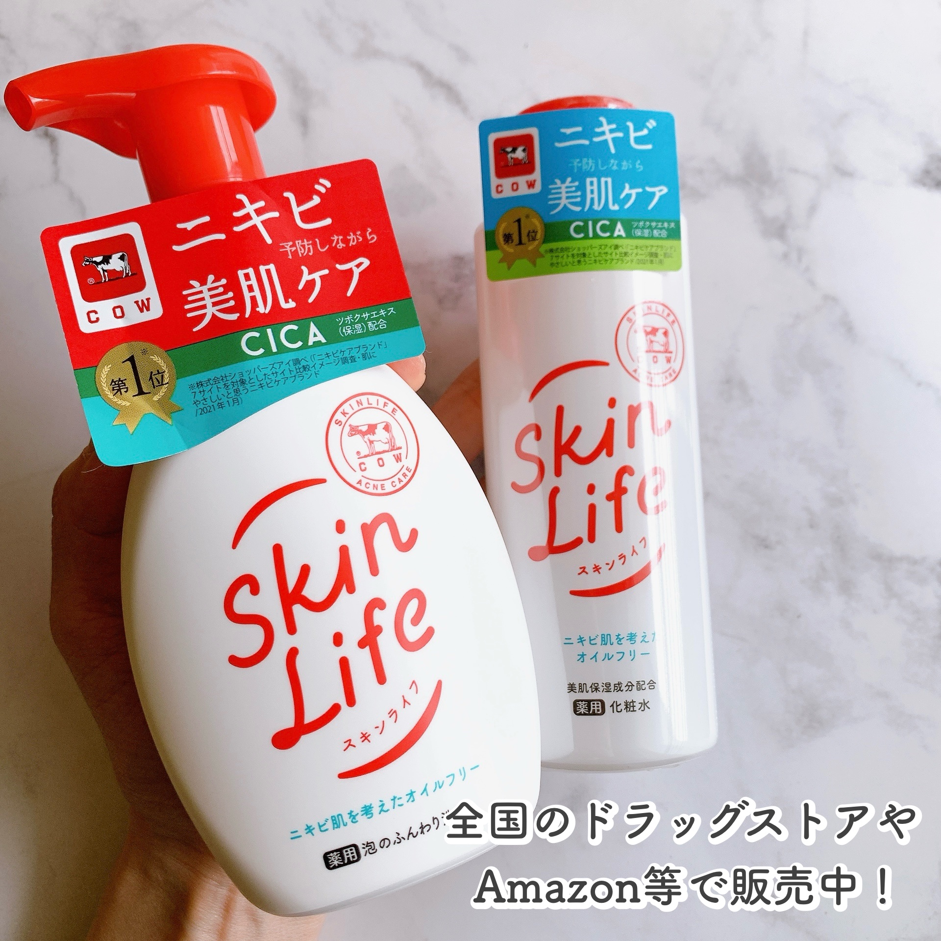 牛乳石鹸が出している化粧水「スキンライフ」✨ 有効成分としてイソプロピルメチルフェノールやグリチルリチン酸2Kを配合。ニキビ肌を考えたオイルフリー処方なのでみずみずしくてさっぱりした使用感なのでスキンケアのベタつきが苦手な人にもおすすめ😉 スキンライフには泡で出てくるタイプの洗顔料もあって、☑︎グリセリンフリーアイテム ☑︎濃密な泡が出てくるとSNSでも話題🦾 こちらには、うるおい成分としてCICA(ツボクサエキス)・ヒアルロン酸・ハトムギ・酵素が配合されていてオイルフリー処方& シトラスブーケの香りでさっぱり使えるよ✨