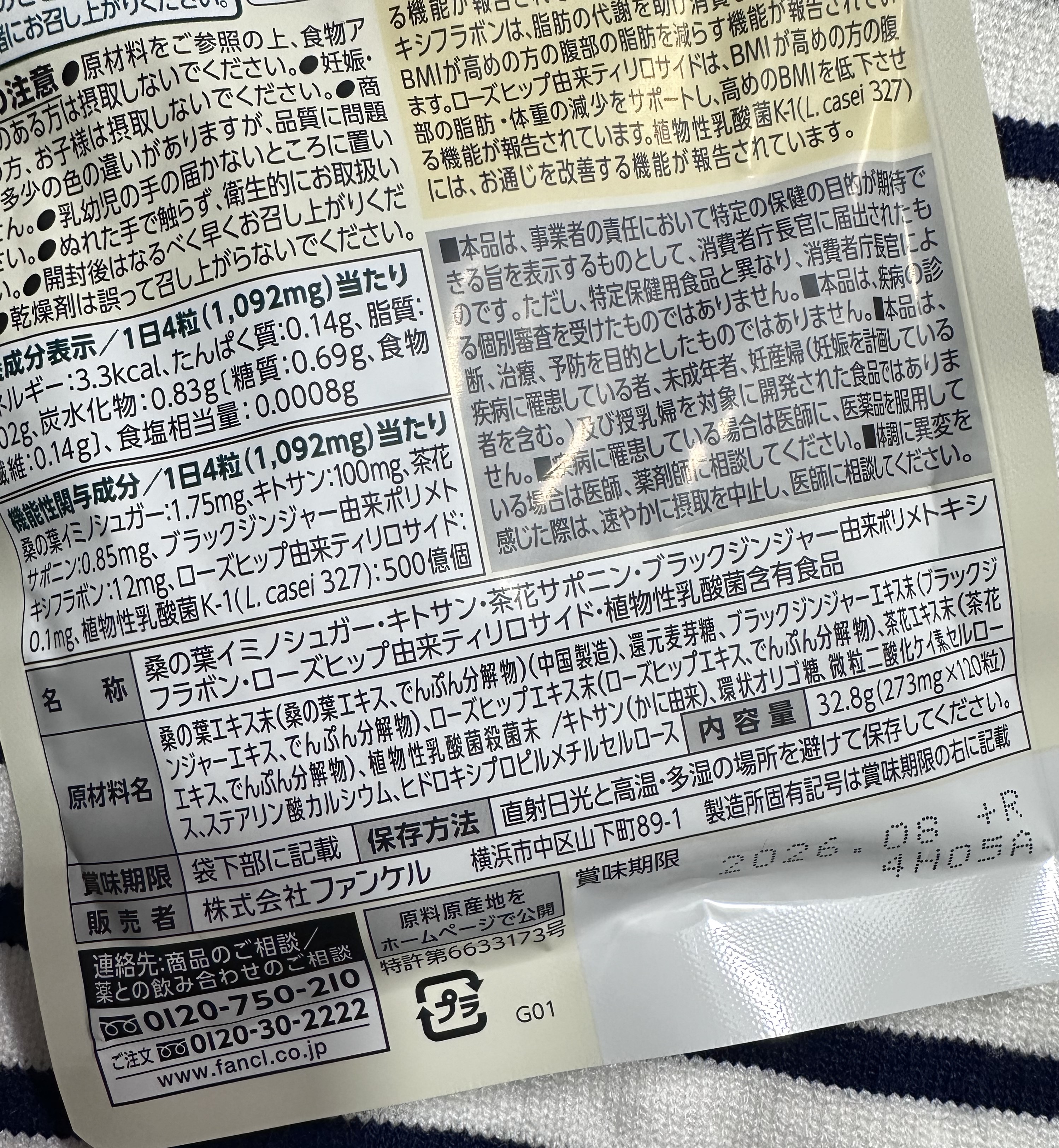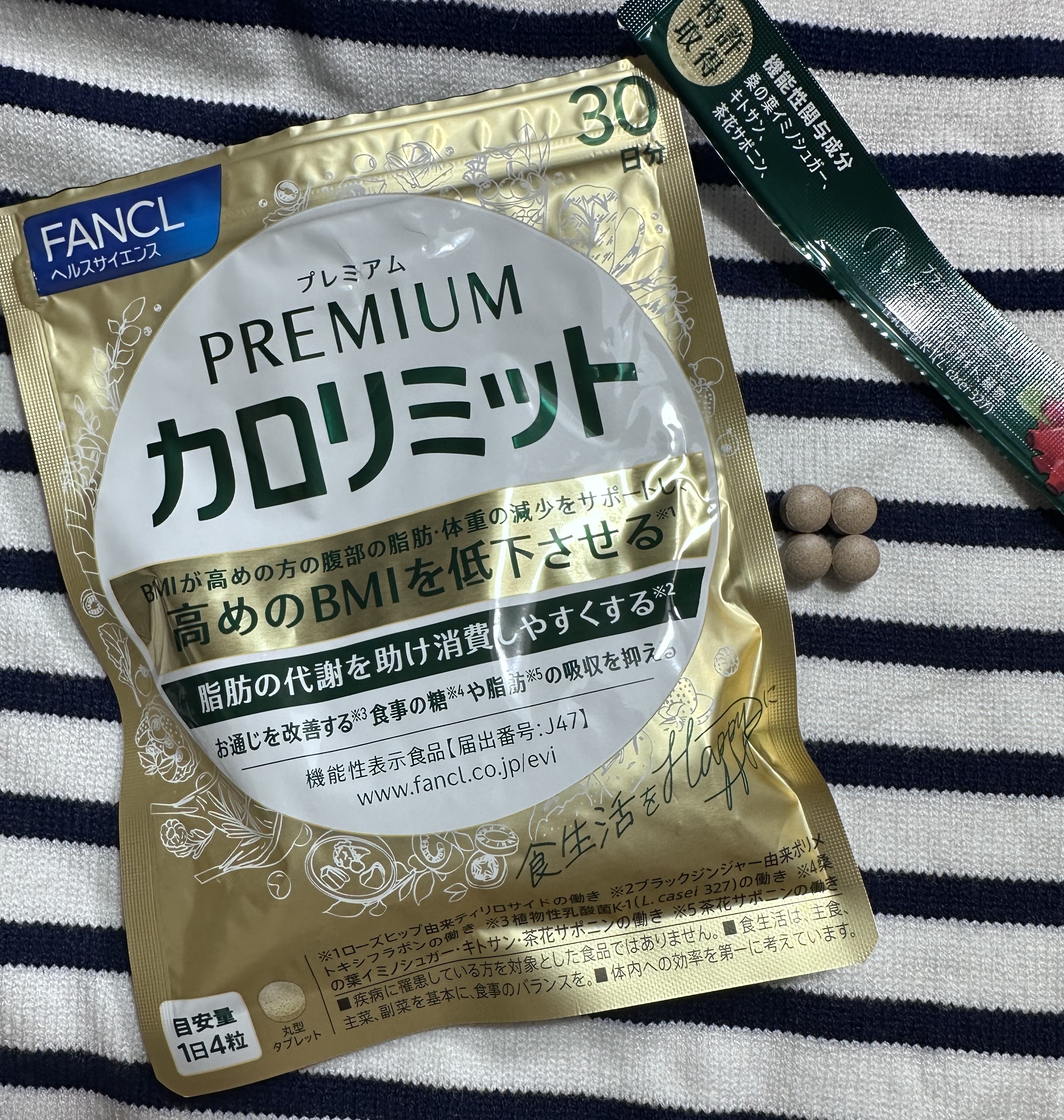 - 【機能性表示食品】 おいしく幸せに食べたい気持ちをサポートするファンケル「カロリミット」ブランドに本気で取り組みたい人に向けた“カロリミット史上最強”の製品が誕生 <お客様の「変わりたい」をサポートする製品設計> カロリミットブランドが持つ、糖と脂肪の吸収を抑える食事サポート機能はそのままに、お客様の変わりたいというニーズをサポートするために、新たに高めの BMI を低下させる機能が報告されている「ローズヒップ由来ティリロサイド」を加えました。 またお通じを改善する機能が報告されている「植物性乳酸菌 K-1(L. casei 327)」を配合。 (届出表示) 本品には桑の葉イミノシュガー・キトサン・茶花サポニン・ブラックジンジャー由来ポリメトキシフラボン・ローズヒップ由来ティリロサイド・植物性乳酸菌K-1(L. casei 327)が含まれます。 桑の葉イミノシュガー・キトサン・茶花サポニンは、食事の糖の吸収を抑える機能、食後の血糖値の上昇を抑える機能が報告されています。茶花サポニンは、食事の脂肪の吸収を抑える機能、食後の血中中性脂肪値の上昇を抑える機能が報告されています。ブラックジンジャー由来ポリメトキシフラボンは、脂肪の代謝を助け消費しやすくする機能、BMIが高めの方の腹部の脂肪を減らす機能が報告されています。ローズヒップ由来ティリロサイドは、BMIが高めの方の腹部の脂肪・体重の減少をサポートし、高めのBMIを低下させる機能が報告されています。 植物性乳酸菌 K-1(L. casei 327)には、お通じを改善する機能が報告されています。 <継続しやすい製剤設計> 当社独自の製剤技術により、目安量の 1 日 4 粒を実現し、お客様に継続して摂取いただけるよう工夫しました。 併せて剤形のコーティング技術により、配合成分が持つ独特の臭いなどを抑え、食事の邪魔をしない設計にこだわりました。 <親しみやすさと高品質な印象を両立したパッケージデザイン> 製品特長が分かりやすく、選びやすいことに加え、カロリミットブランドが持つ明るく親しみやすい印象と上品な金色による高級・高品質な印象の両立にこだわりました。 【アレルゲン(28品目中)】 かに 【ご注意】 ※妊娠・授乳中の方、未成年の方はお召し上がりにならないでください。 ※本品は、特定保健用食品と異なり、消費者庁長官による個別審査を受けたものではありません。 ※疾病の診断、治療、予防を目的としたものではありません。 ※食生活は、主食、主菜、副菜を基本に、食事のバランスを。 9月下旬から順次、一部コンビニエンスストアやドラッグストア、EC モールで先行発売を予定しています。