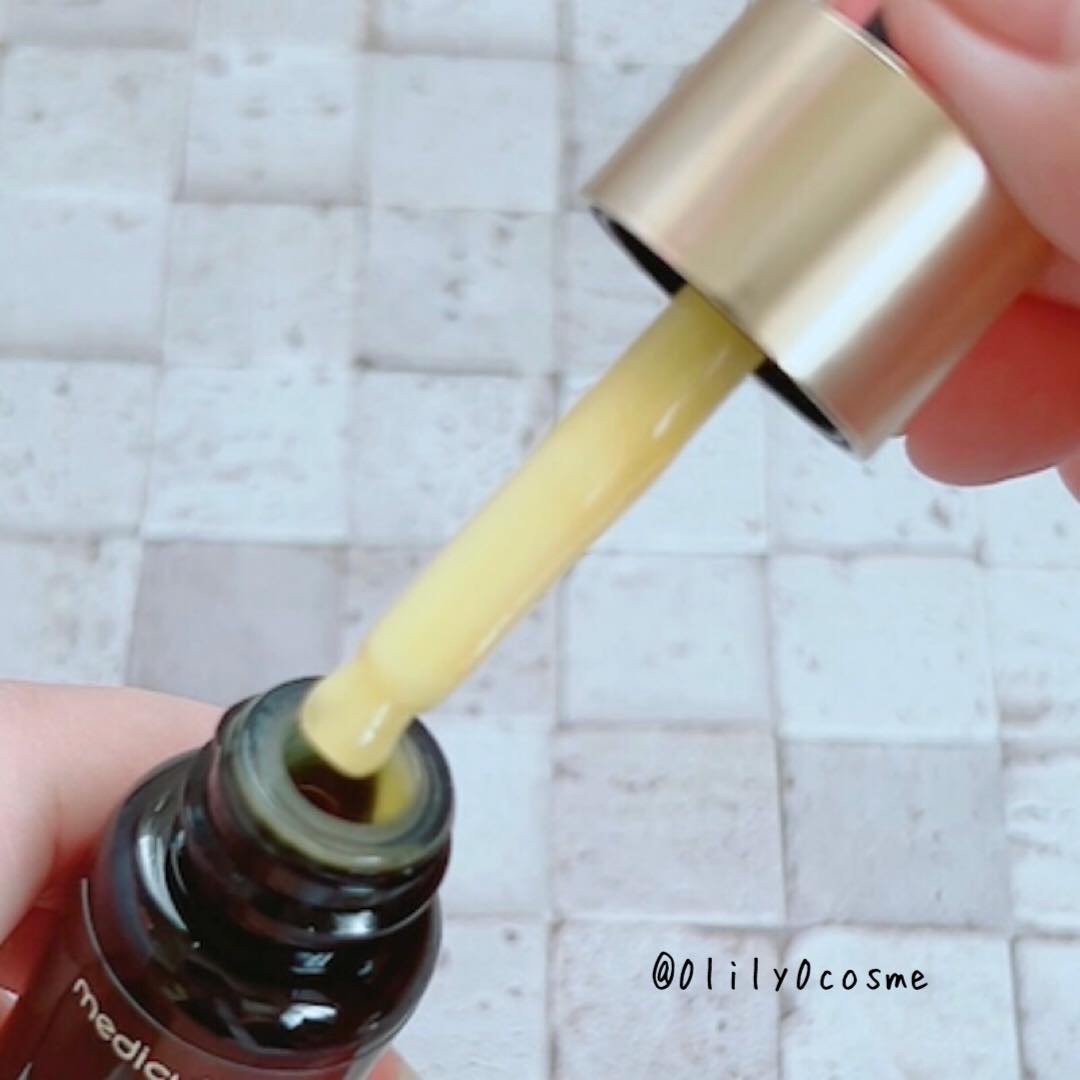 韓国🇰🇷ダーマコスメブランドの[medicube(メディキューブ)]のシミ消しケア。累計100万個販売突破の人気のアイテム! 7日間で肌がトーンアップすることが臨床試験で確認され、美白としわ改善もケアできる美容液✨ とにかく濃い! トロッと濃厚なのがわかります 高濃度ビタミンの証、独特の香りがします