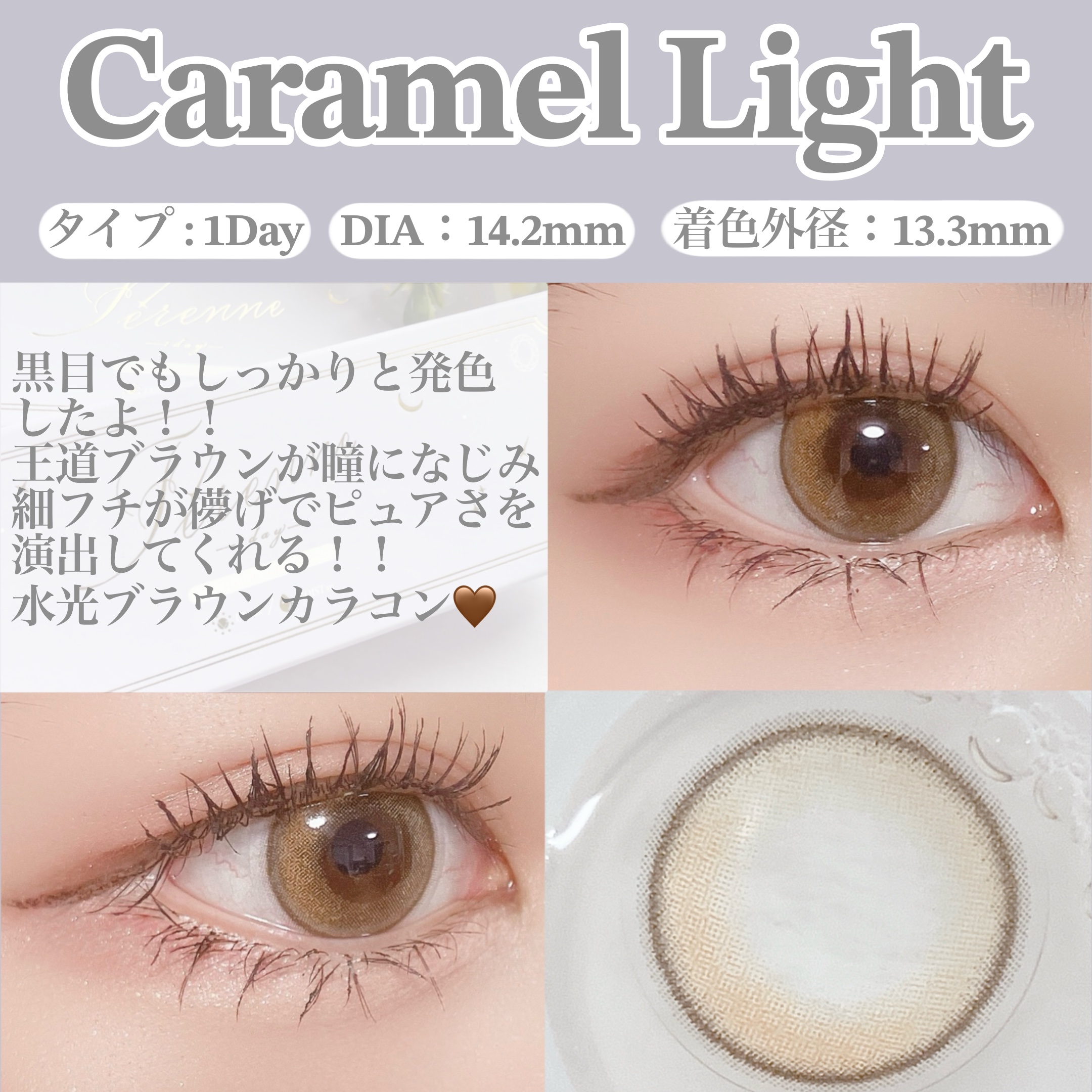 - ■Eccrine Brown(エクリンブラウン) DIA:14.2mm/着色外径:13.3mm ちゅるんとした魅力的な瞳を演出。 ブラウンとライトベージュが瞳に艶感を出す水光レンズ。 ■Caferia(カフェリア) 夕陽に包まれた瞬間、世界で一番美しいプリンセスラグジュアリーな輝きが、あなたの瞳を優雅に彩る。 DIA:14.5mm / 着色直径:13.7mm / BC:8.7mm ■Clairine(クレリーヌ) ほろ苦いエスプレッソが香る。大人なまなざしで、雨上がりの花が咲くようにクールに輝く瞳。 DIA:14.5mm / 着色直径:13.5mm / BC:8.7mm ■Chocolisse(ショコリス) チョコレートのように甘くとろける瞳で、惹きつける甘さと気品を纏った大人のプリンセスアイへ。 DIA:14.5mm / 着色直径:13.6mm / BC:8.7mm ■Charme Gray(シャルムグレー) DIA:14.2mm/着色外径:12.7mm 大人可愛いダークグレーがポイント。 細めのくっきりフチが瞳に馴染み高貴さを演出。 ■Tierphine Brown(ティアフィーヌブラウン) DIA:14.2mm/着色外径:12.3mm 裸眼に溶け込むようになじみ、やわらかい印象を与えてくれる。 透明感溢れる可憐な瞳を演出 ■Ferrish Pink(フェリッシュピンク) DIA:14.2mm/着色外径:13.3mm 瞳に立体感と透明感をプラスしてくれるグラデーションレンズ。 瞳にじゅわっと溶け込むようになじみ、絶妙なこなれ感を演出してくれる。 コンタクトレンズの不適正使用による眼障害の危険性等などがあります。 ●コンタクトレンズは高度管理医療機器です。不十分な洗浄・消毒など不適切なケアや、長時間・交換期間を超えた装用により、アレルギー性結膜炎、角膜感染症、角膜潰瘍等の重篤な眼障害が発生する危険性があります ●ご使用前に取扱説明書を確認してください 使用上の留意事項 ●眼科医院等を受診してからお求めください ●眼に異常を感じたら直ちにレンズ使用を中止し、お近くの眼科等で診察を受けてください ●医師の指示にしたがってご使用ください ●コンタクトレンズを装用する場合、自覚症状がなくても、眼科医院等での定期検査を受けてください ●レンズに不具合がある場合は使用しないでください
