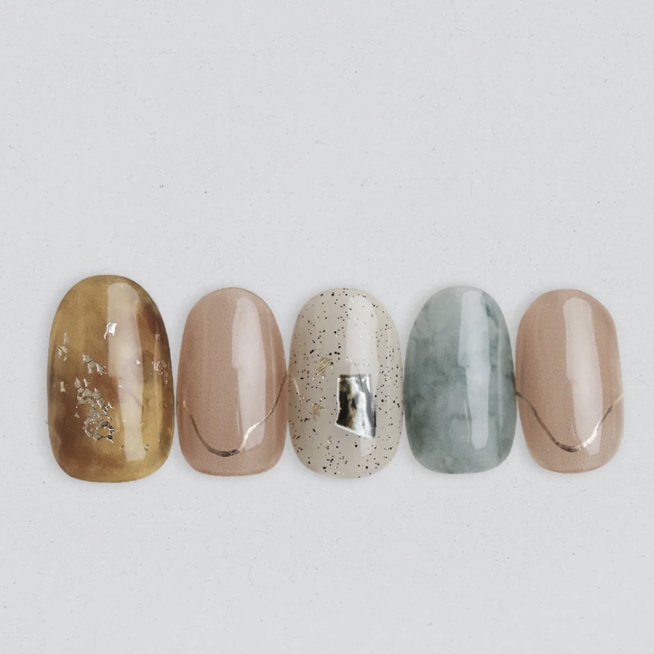 - 本物のジェルを60%固めた状態のシールタイプのセルフジェルネイルで柔らかくどんな形の爪にもしっかりフィットします。 ベースジェル、カラージェル、トップジェルの3層で構成しており、完全に固めることでツヤ感と立体感が生まれます。(※仕上げにはジェルランプが必要です) 豊富なカラーやラメ、パーツなどを使用した多様なデザインは、まるで高級サロンのようなクオリティに仕上がります。 <セット内容> 本体 30枚 wood stick(ウッドスティック)×1 nail file(ネイルファイル)×1 prep pad(プレップパッド)×2