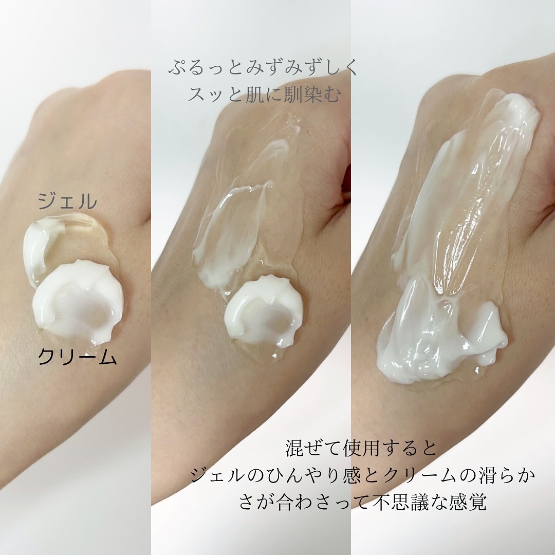 - 毎日変わる肌のコンディションに合わせて自分だけの肌レシピを作れるカスタマイズクリーム うるおいたっぷりのウォータージェルクリームと水分補給&生き生きとした肌印象に導くパンテノールクリームで同時にダブルケアができるこだわりアイテム。 べたつきなく柔らかいテクスチャーの2つのクリームが肌のコンディションを整え、もちっとハリ感のある肌へと導きます。 [使い方] 1)洗顔後、化粧水や美容液で肌を整えた後に、スパチュラで肌のコンディションによって、ウォータージェルクリームとパンテノールクリームを適量を取り、 混ぜ合わせてから顔全体に優しく塗り伸ばします。 *毎日変わる肌のコンディションに合わせて、乾燥が気になる時はウォータージェルクリームを、敏感に傾いた肌を整えたい時にはパンテノールクリームの量を多めにMIXして使用するのがおすすめです。