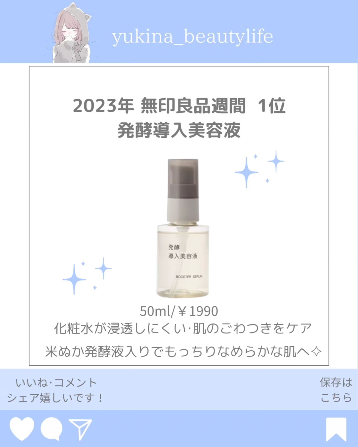 無印良品の発酵導入美容液は使用感の良さと高コスパアイテム🙆🏼♀️♡ 配合成分の65%以上を水の代わりにうるおい成分の米ぬか発酵液を使用しており、肌にハリとうるおいを与える美容液🌾🫧 お値段は導入美容液の中でも手に取りやすい価格帯なので毎日の美容習慣として取り入れるのに◎👌🏻ˎˊ˗