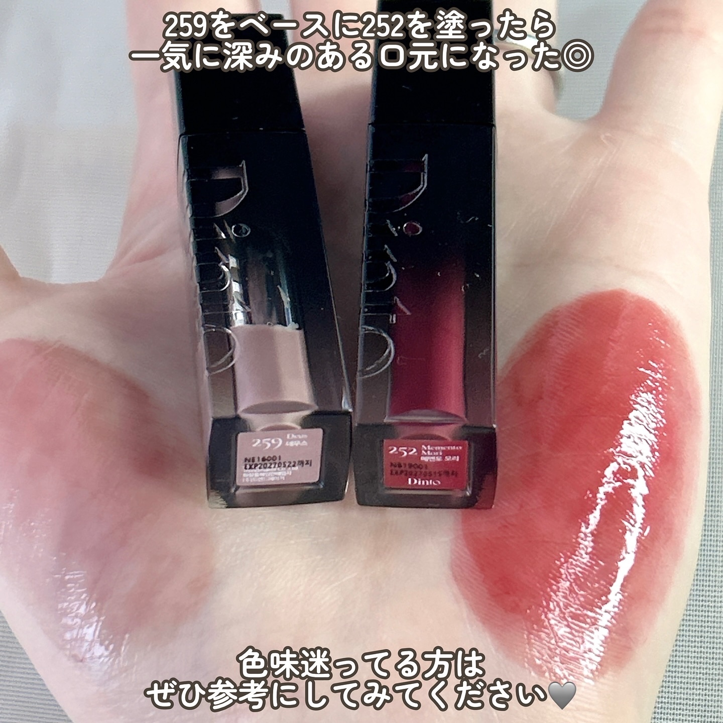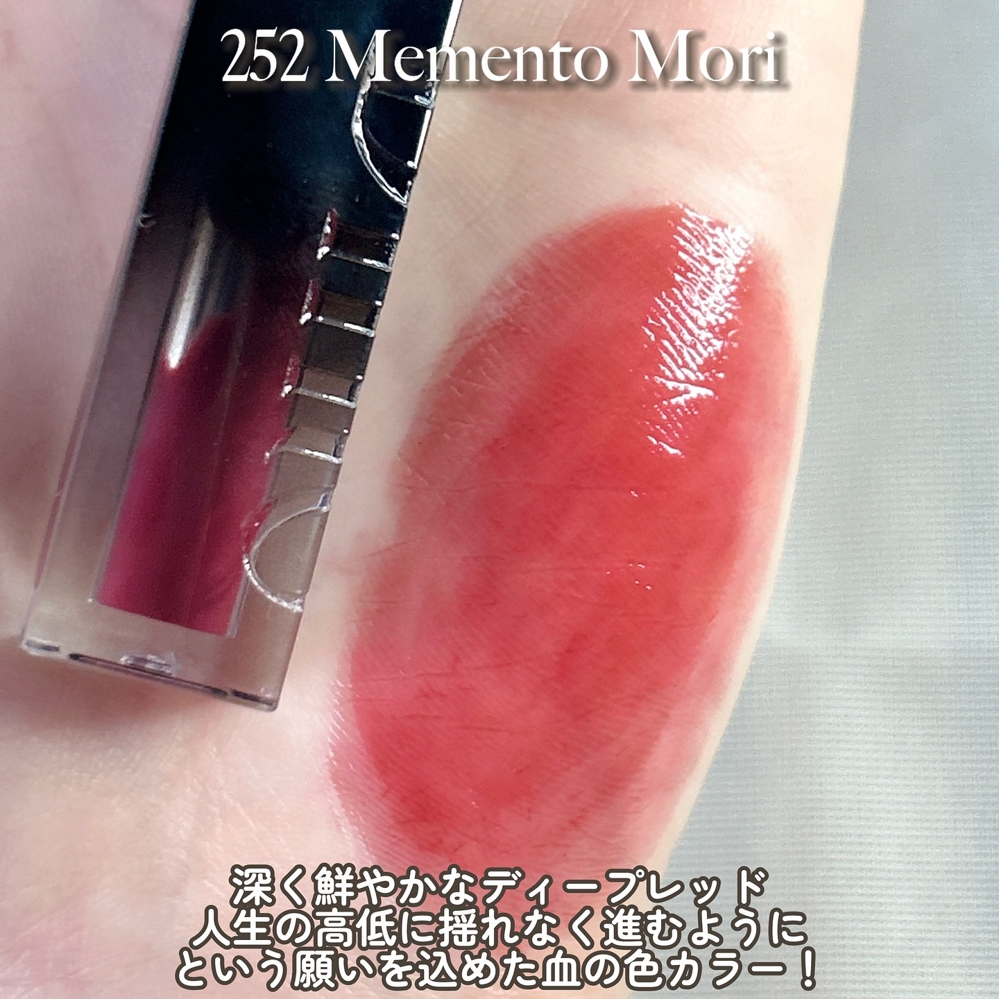 ミニサイズのリップとてもありがたき🙏🏻✨ 気になってた4色をお迎えして色味チェック。個人的には252.261がとっても好み!ブルベ冬カラーが圧倒的に好みなんです🥺✨ カラー名もとてもおしゃれ。 252 Memento Mori 257 Ave Maria 259 Deus 261 Umbra 121は重ねて使うとめ〜っちゃキラキラになるし、ダークな雰囲気に仕上がるので大好きです🖤
