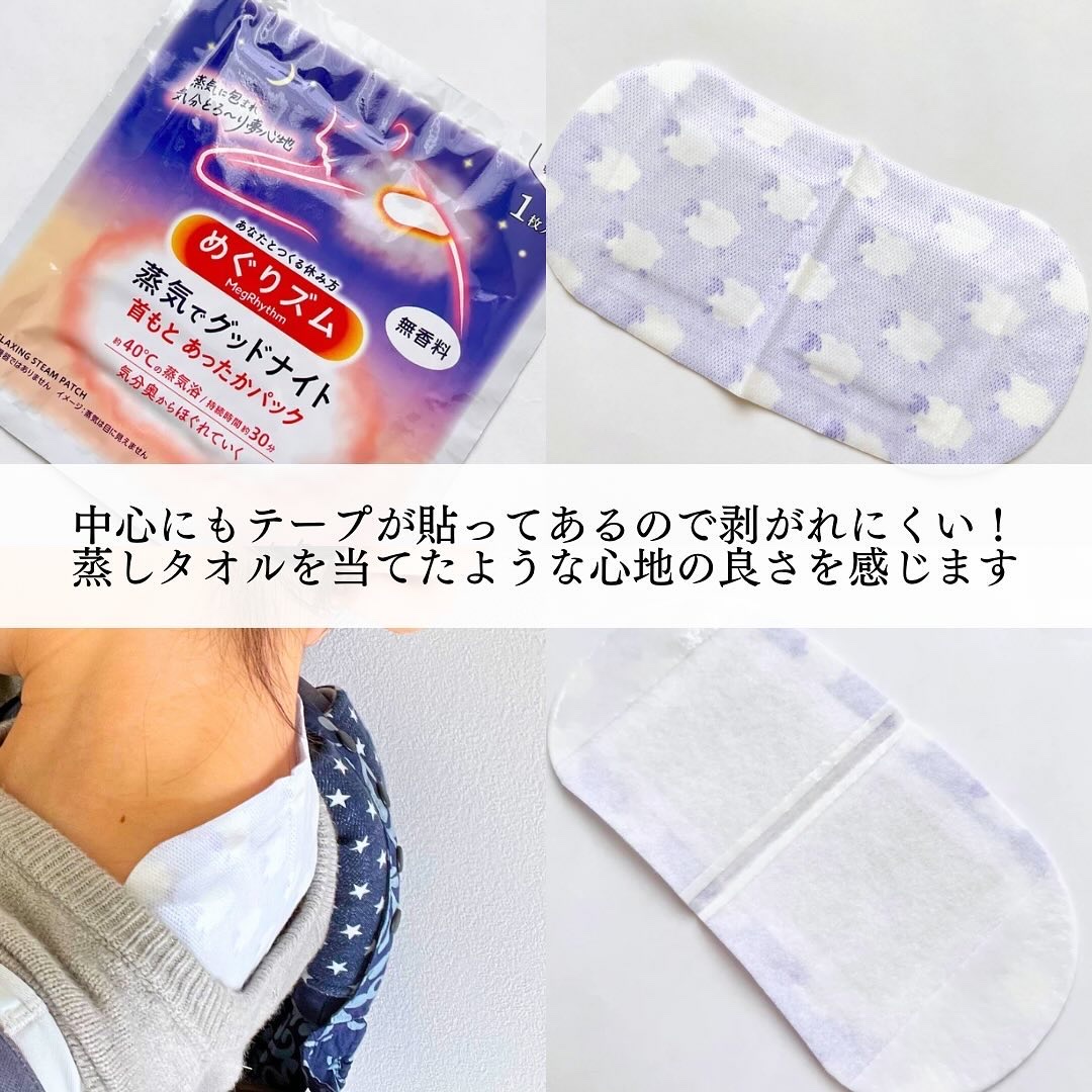 じんわり暖かくなるのがとても心地よかったです。 粘着力は弱めで、少し動くと剥がれてしまうのでお布団に入ってから貼るのがおすすめです。 これを使うと本当に気持ちよかったです! 貼ったらできるだけ動かないように気をつけるとストレスなく使えるかなと思います。 温度は高すぎないので熱いという感じではなく、じんわり温めてくれる感じです。 長く着用していてもやけどしにくいと思います。
