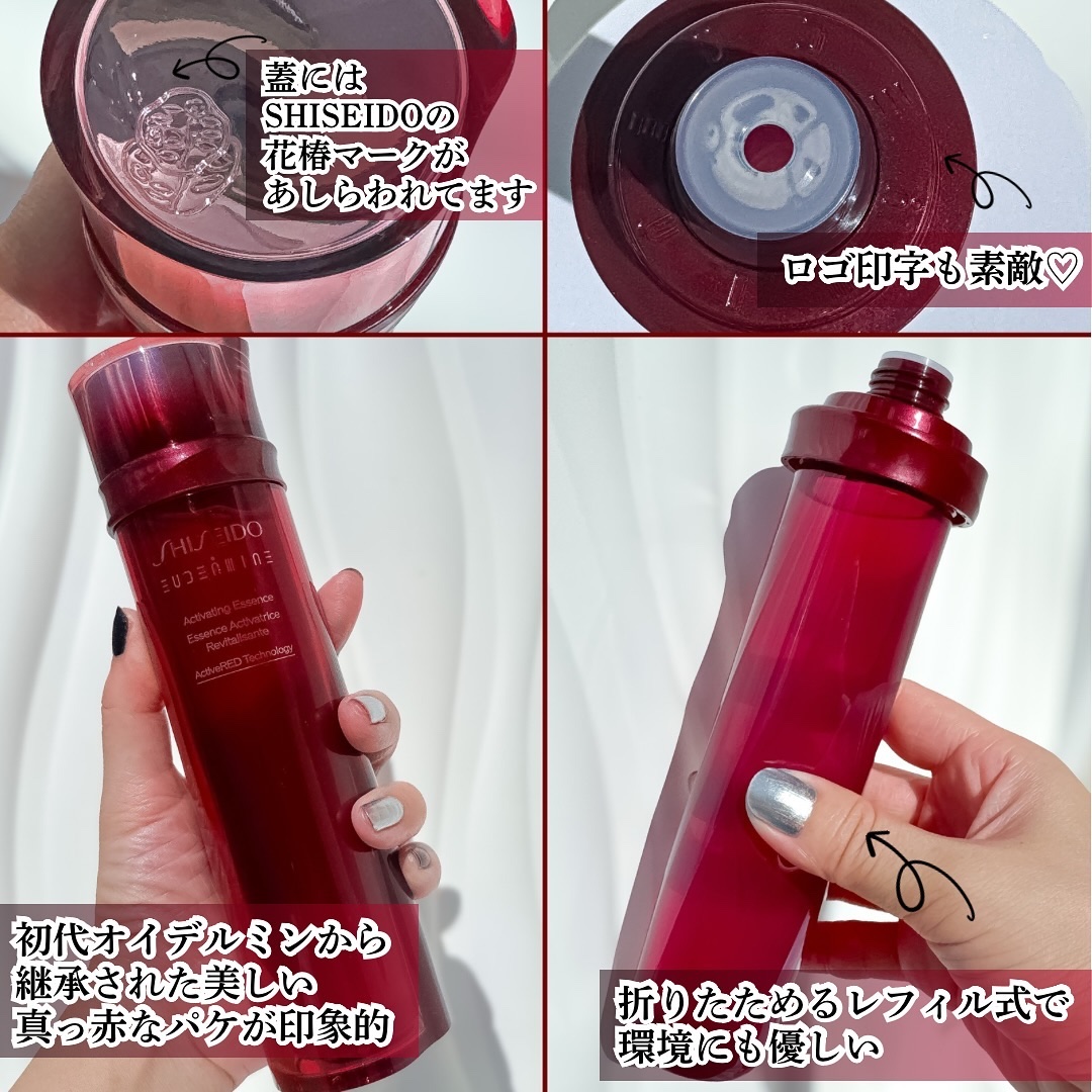 資生堂が1897年に初めて発売した化粧品がオイデルミン! 120年以上の時を経て、2023年にSHISEIDO独自のアクティブREDテクノロジーを搭載し、オイデルミン エッセンスローションとして発売 美肌の3大要素 ⚪︎透明感あふれる輝き ⚪︎ハリ•弾力 ⚪︎なめらかさ が整った状態に導いてくれるそう 肌にグングン馴染んでいく感じが大好き そして肌のキメが整うのがしっかりわかるッ