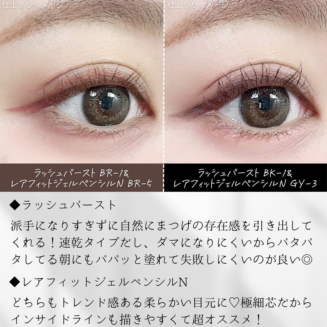 ダマなく美しく盛りたい欲に応える全部盛りマスカラが新登場☺️❤️ ラッシュバーストはバリューミングワックスが最大配合になっていて、なめらかな液がまつ毛1本1本をダマなくボリュームアップ😳✨ ロング・ボリューム・カールを叶える"全方位バースト処方"で、インパクトのある目元を作れちゃうからぜひためしてみてほしい🥹💖