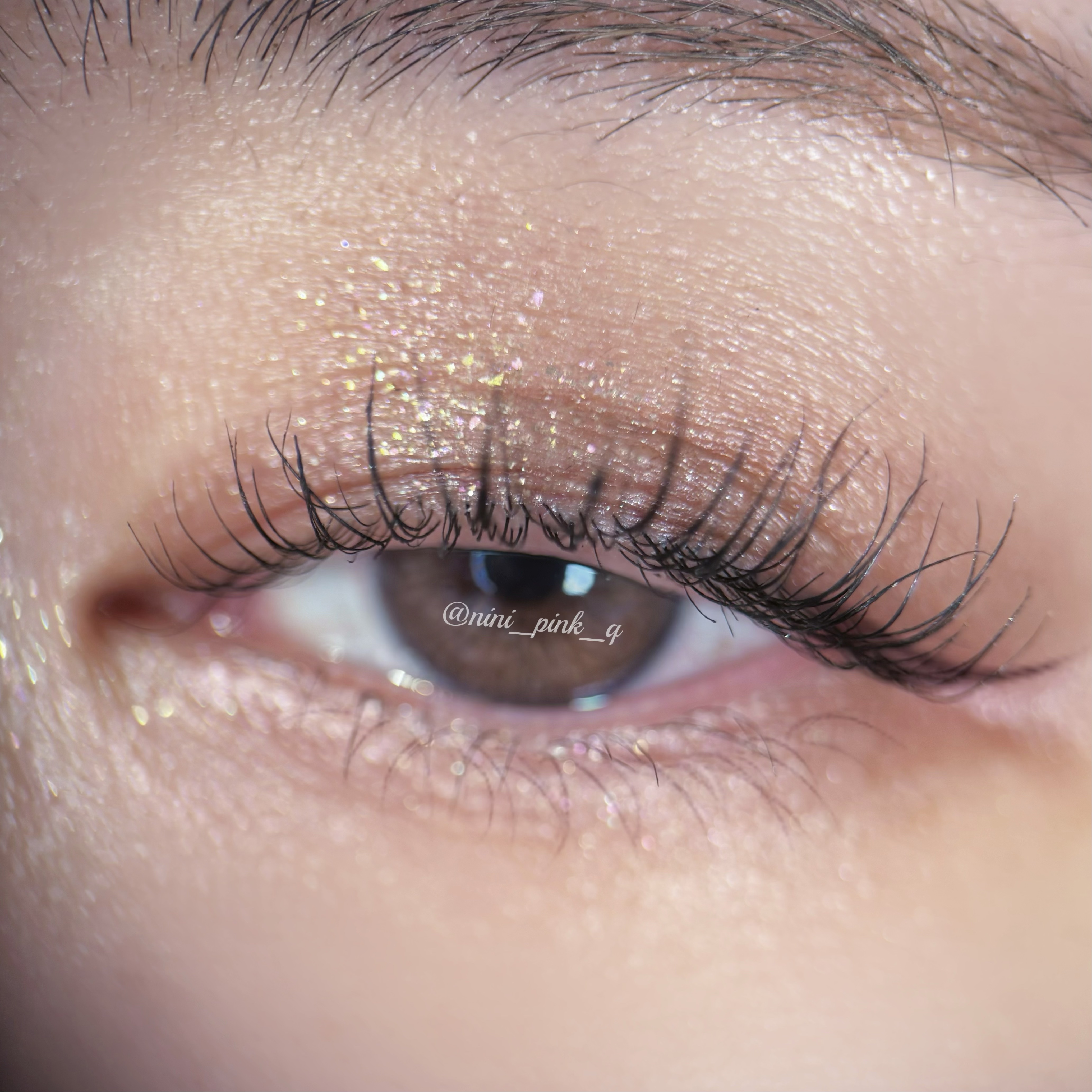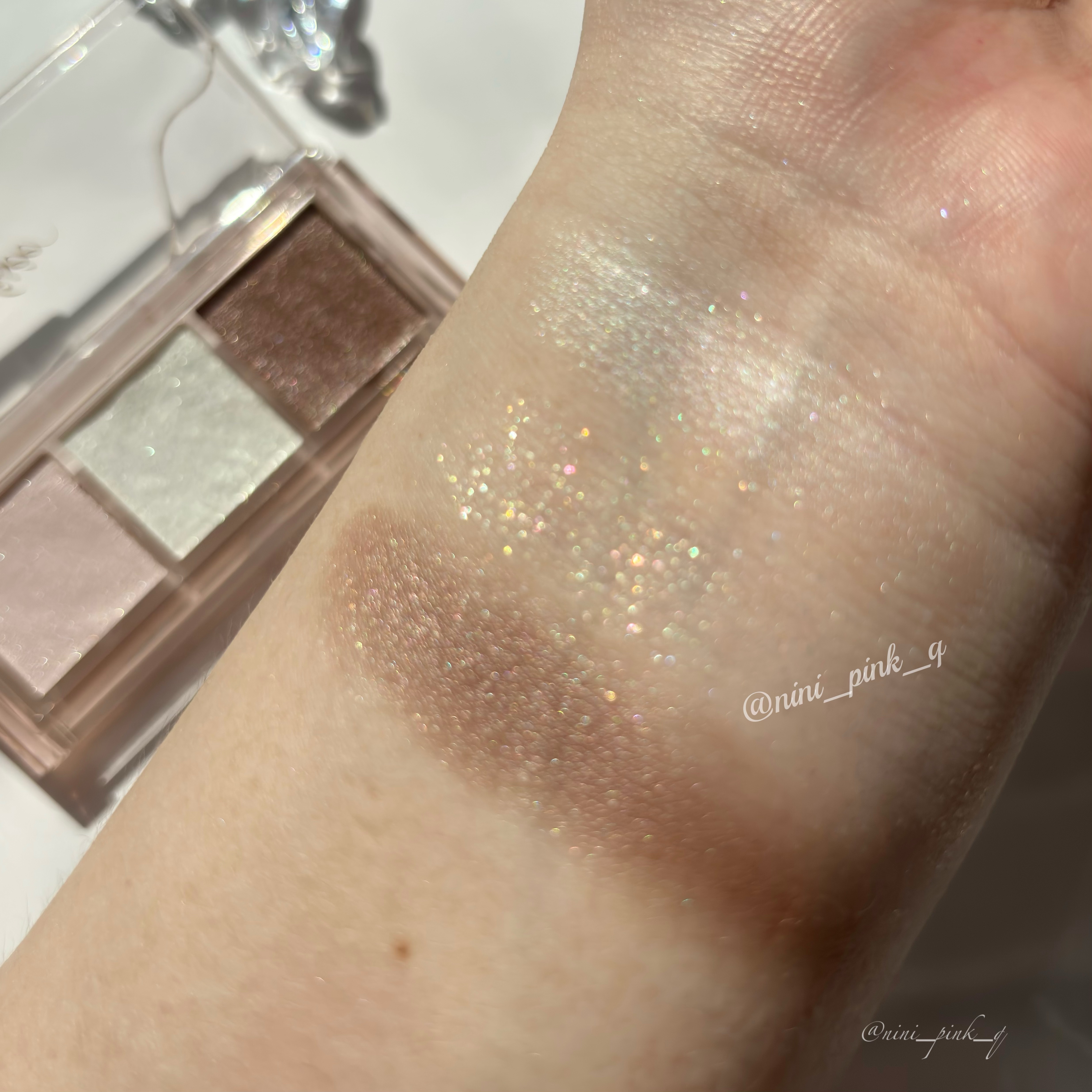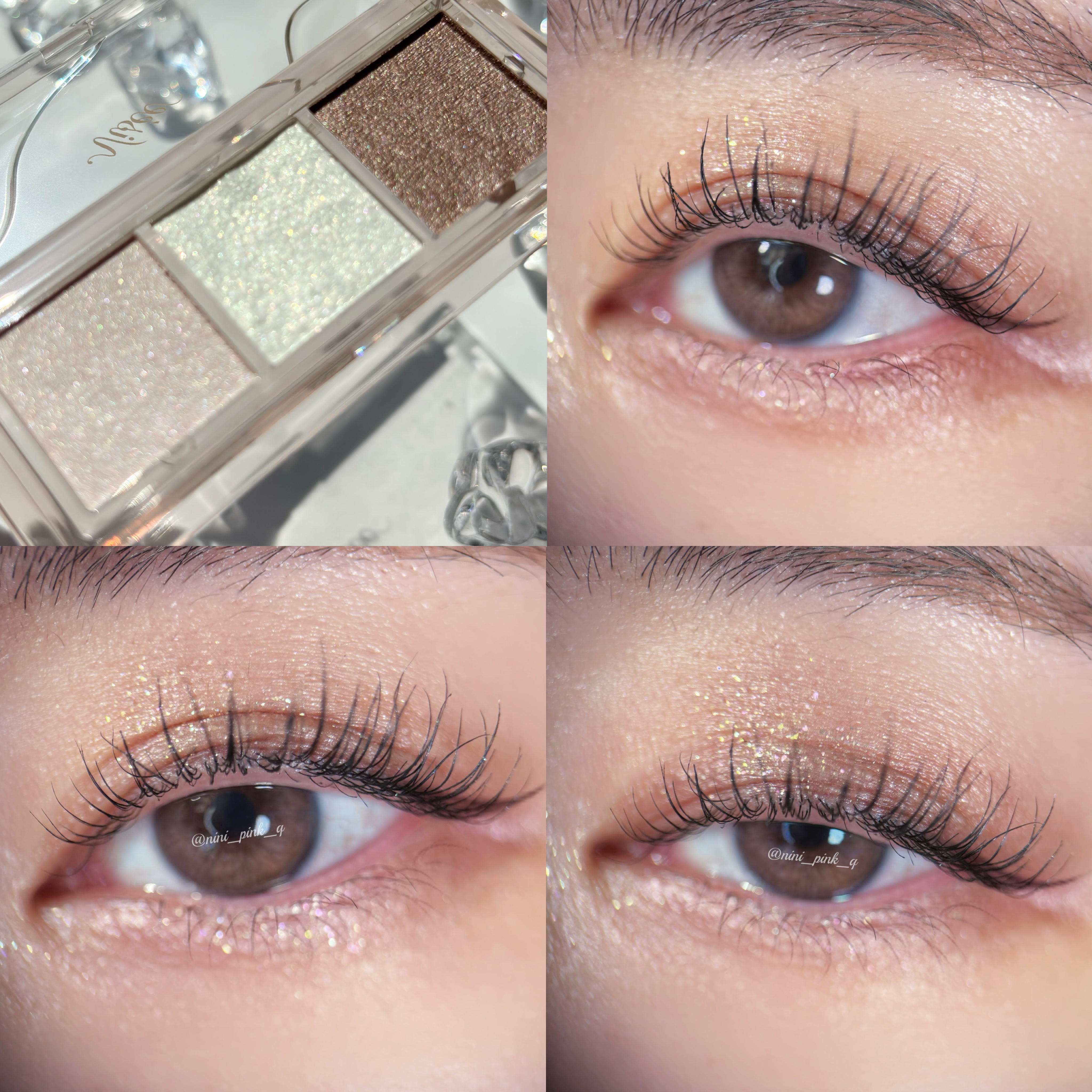 まばたきや動きにより色と輝きが変化する 高輝度偏光パールと大粒グリッターを贅沢に配合した3色パレット! 繊細なパールの輝きが上品なの🥺 グリッターカラーは高輝度の偏光パールと大粒グリッターが贅沢に配合されていて眩いほどキラッキラで可愛い! 無垢なまなざしはブラウン系で色に迷ったらまずはこれ!温かみのあるブラウン系で誰でも使いやすいカラーだよ。