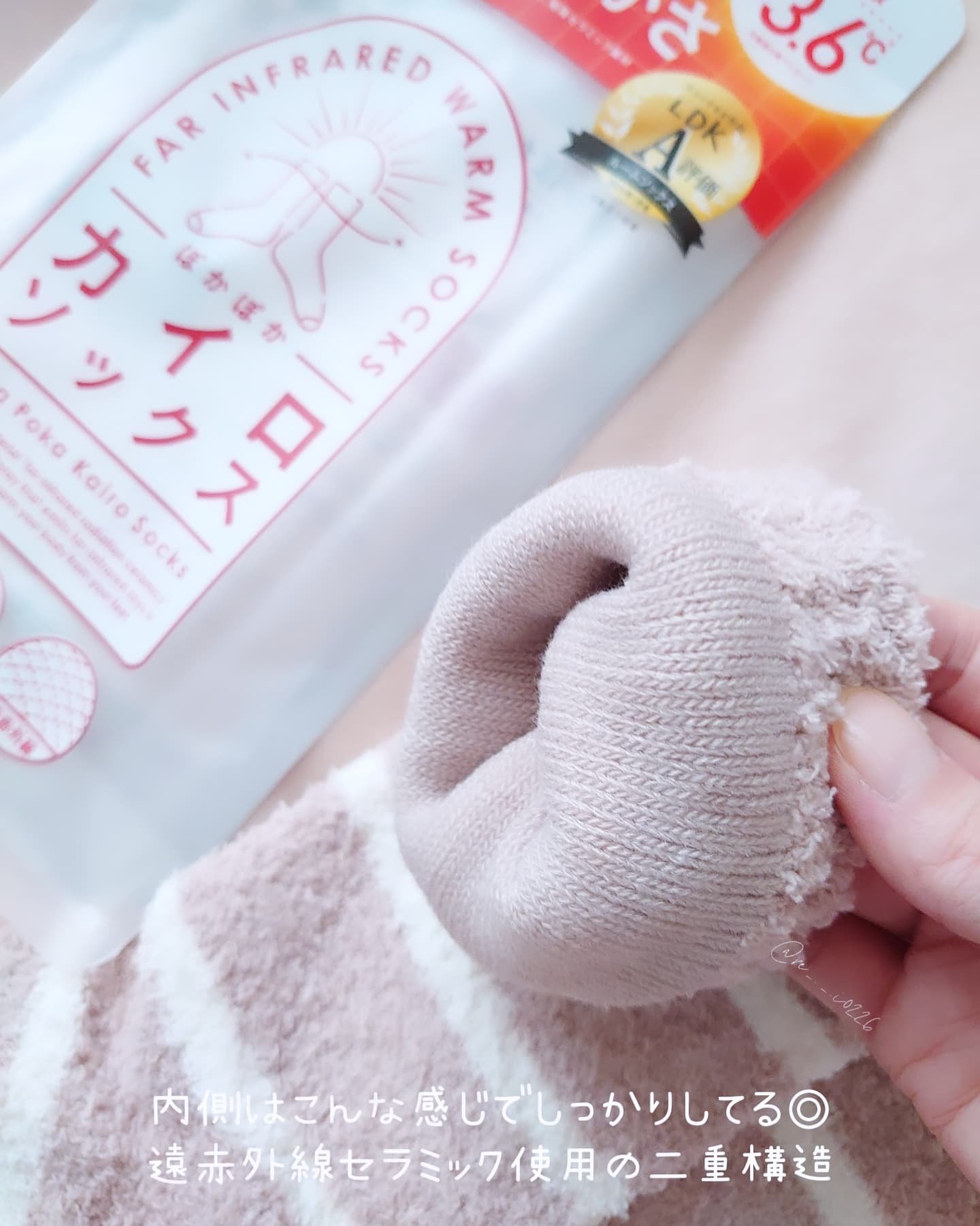 遠赤外線効果とつま先まで2重構造になっているから暖かくて冷えを予防してくれます🦶 履くだけで足元の温感+3.6°C🔥 モール素材でモコモコで締め付け感のない履き心地で快適に過ごせます🙆♀ 全国のドラッグストアで購入できるのでよかったらチェックしてみてね👀💖