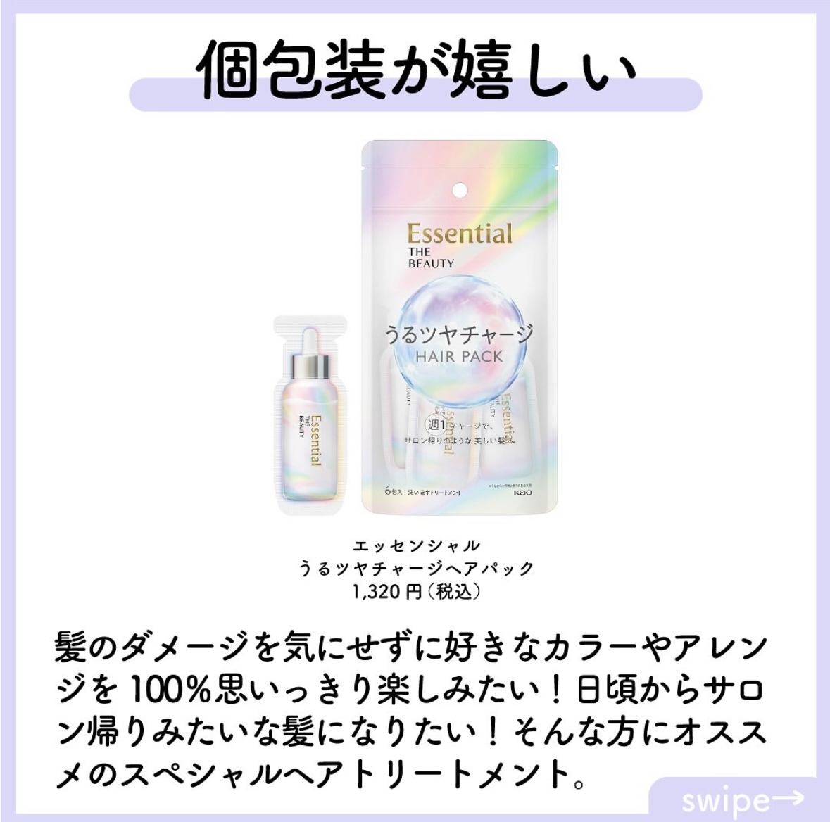 エッセンシャル ザビューティ うるツヤチャージヘアパック | 1,414円 |