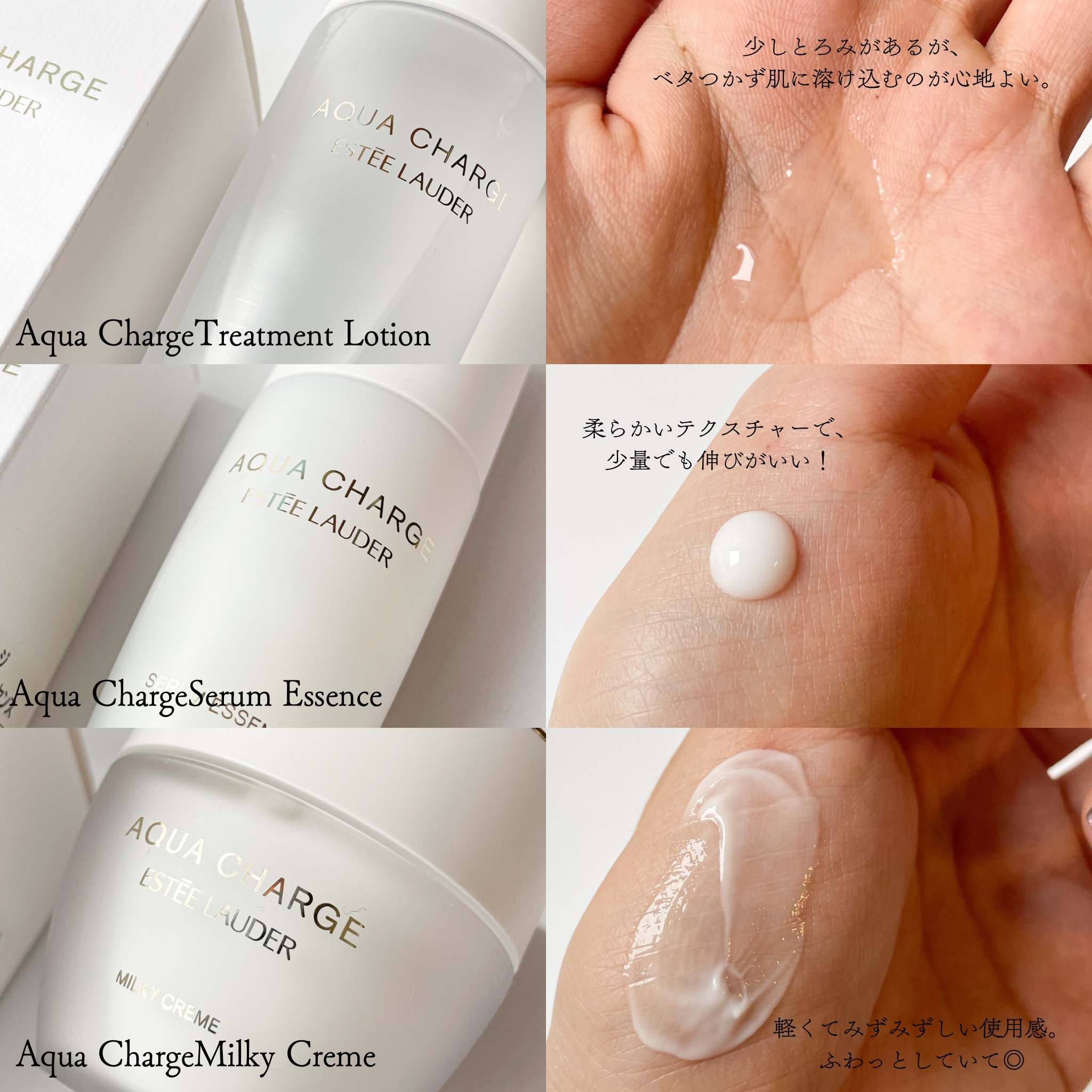 日本人の肌を研究して開発された 日本発のスキンケアがESTEE LAUDERから誕生したよ! アクアチャージは日本の発酵技術を追求した 勇心酒造と共同開発されたスキンケアでどのアイテムも軽い使用感ながらもしっかりと保湿力を感じられるよ! 保湿力あるけどベタつきや重さはなく、オールシーズン使いやすい◎