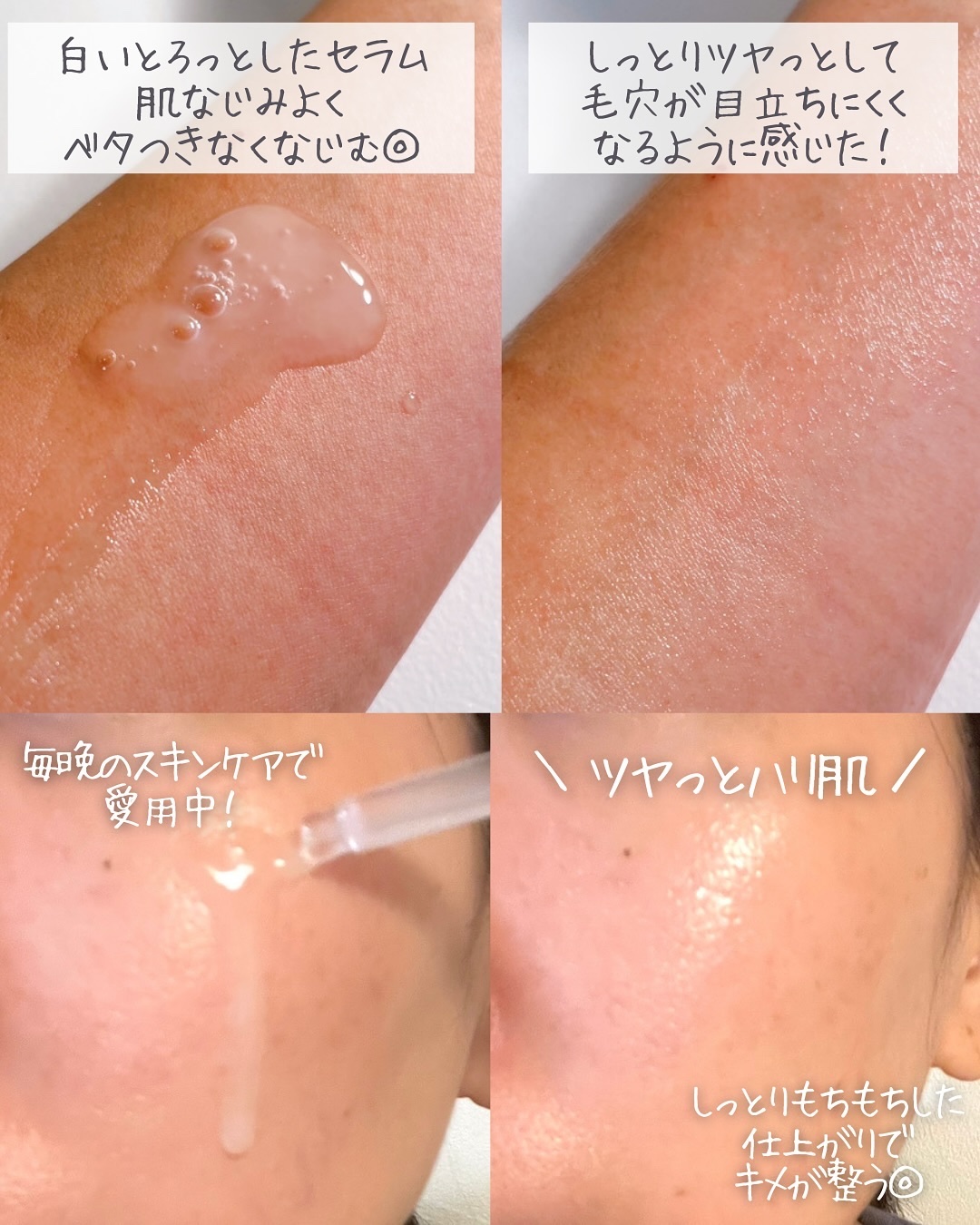 | とろみはあるけどベタつかず、伸ばしていくと肌がツヤっぽくなっていく◎ | 詳細を見る | ||