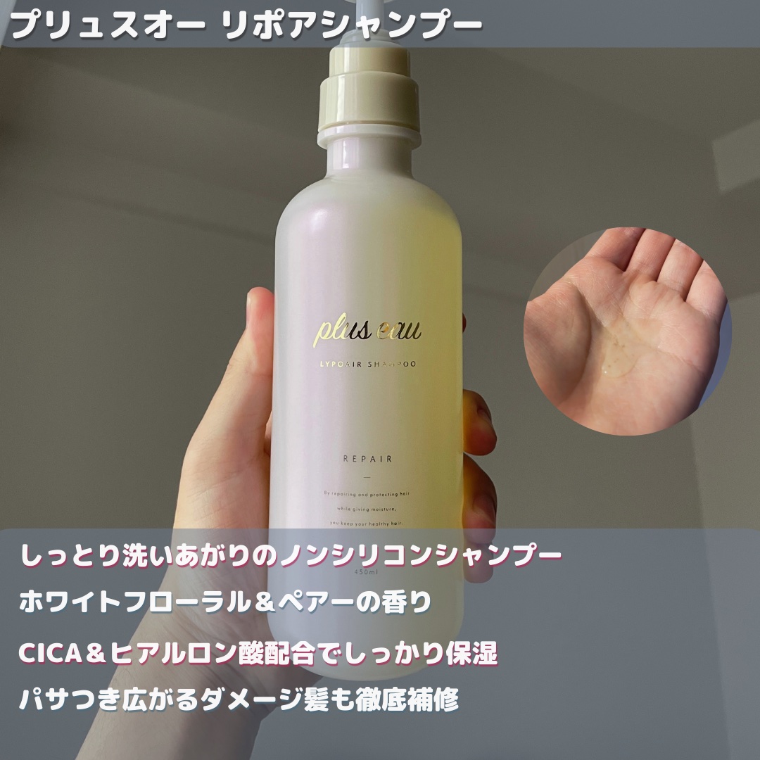 🫧pluseauリポアシャンプー/リポアトリートメントLIPSベストコスメ多数受賞のプリュスオーからダメージ補修シリーズ新登場!浸透性の高いシルクリポカプセルを補修成分として配合、とろける質感&しっとり濃密。洗いながら髪ダメージを補修するP...